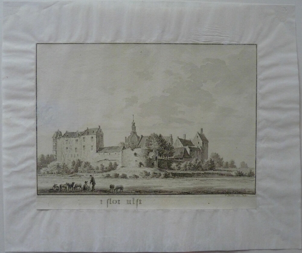 Gravure " 't Slot Ulft" op papier door Hendrik Spilm...