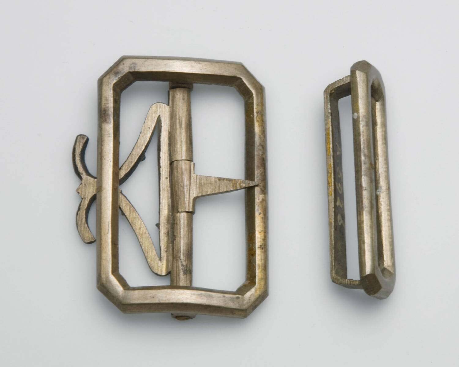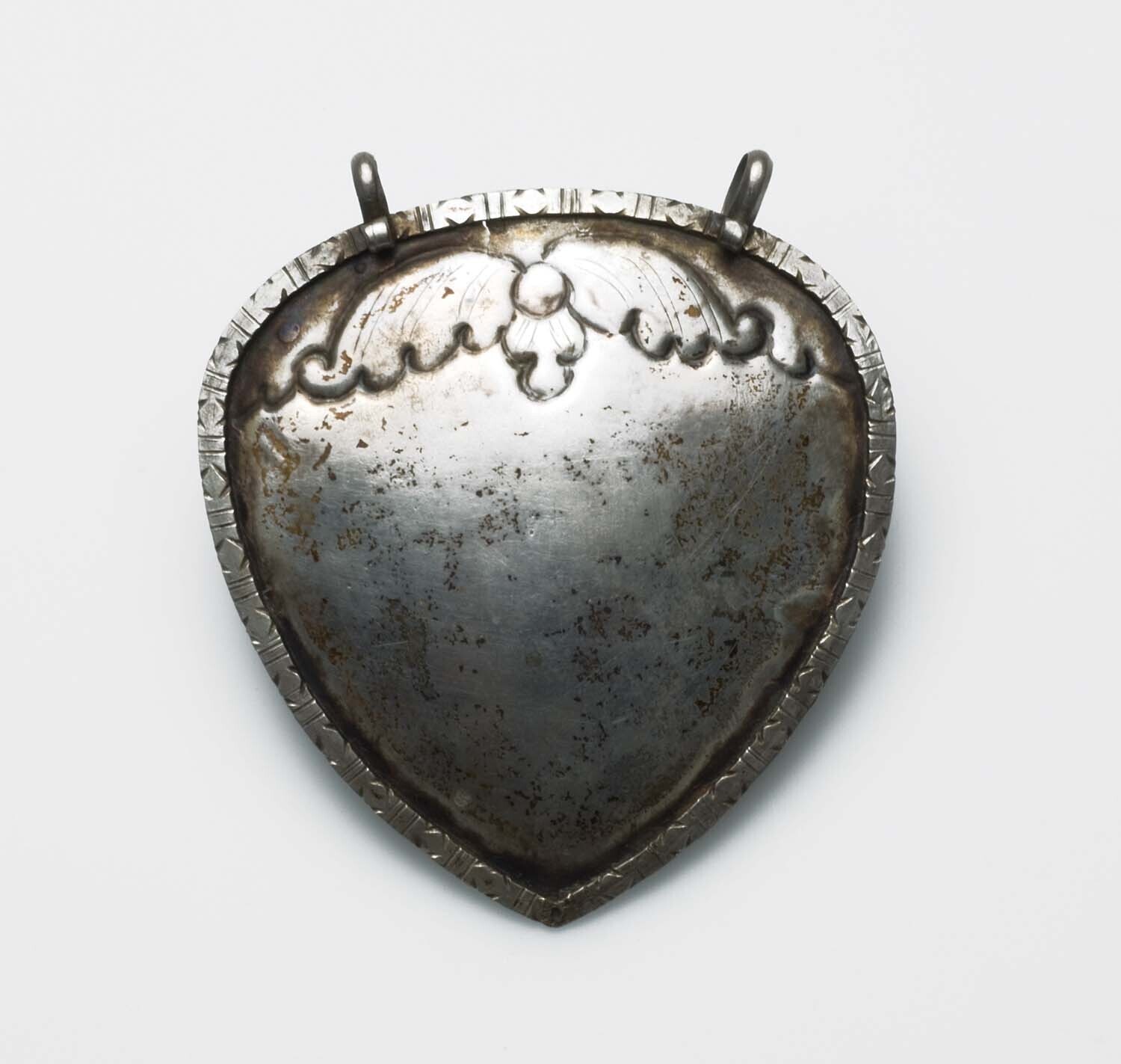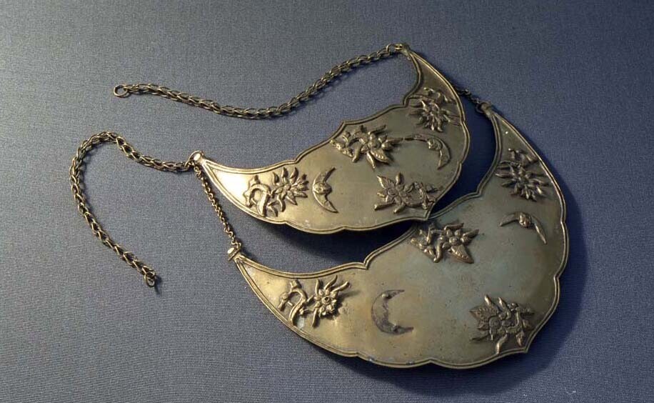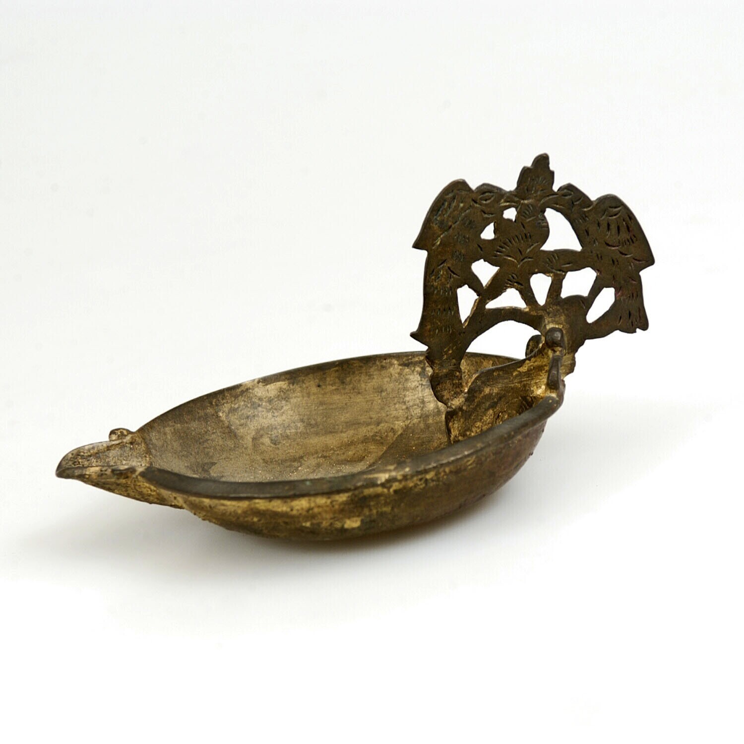 Messing olielampje gegraveerd in de vorm van twee vo...