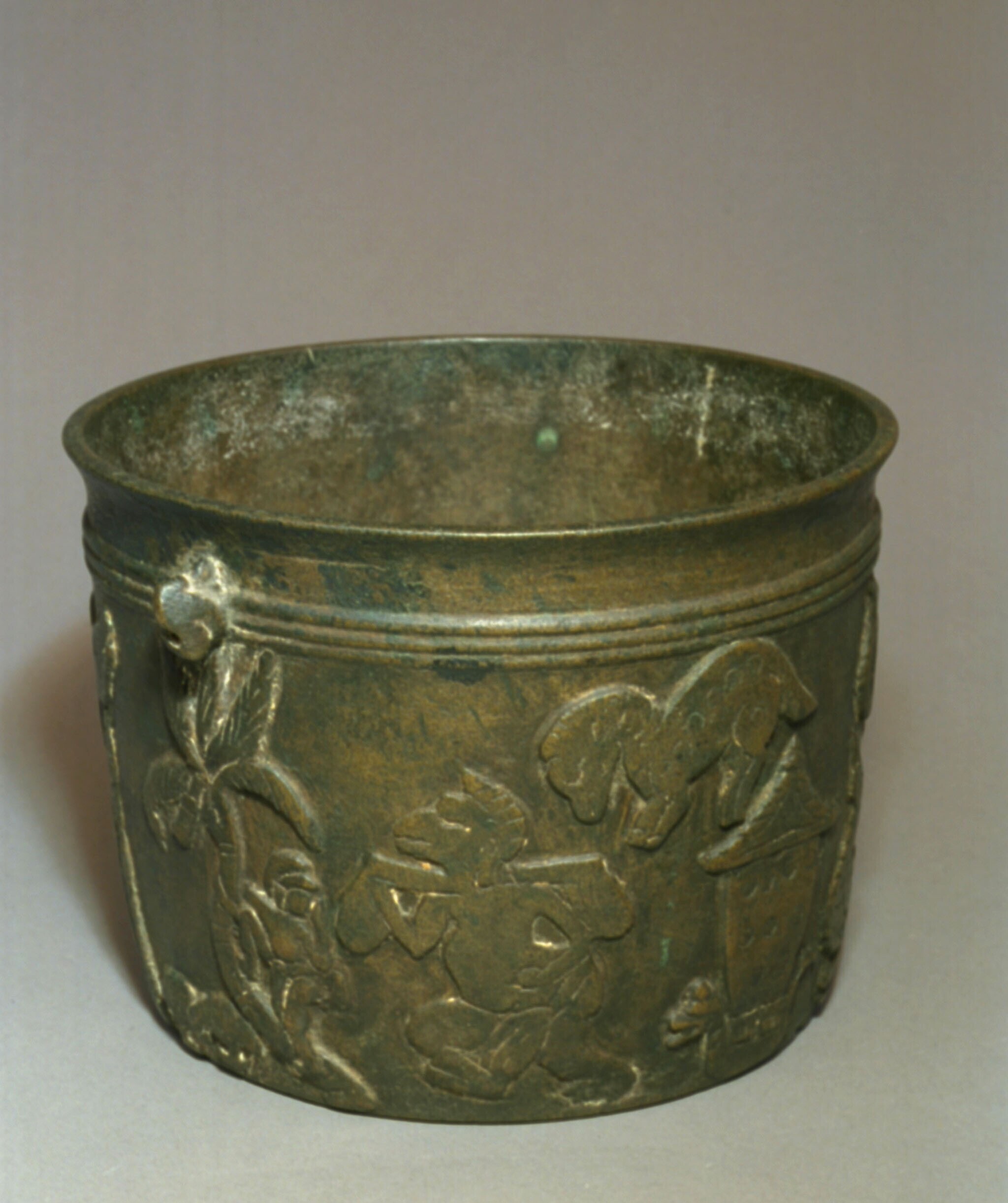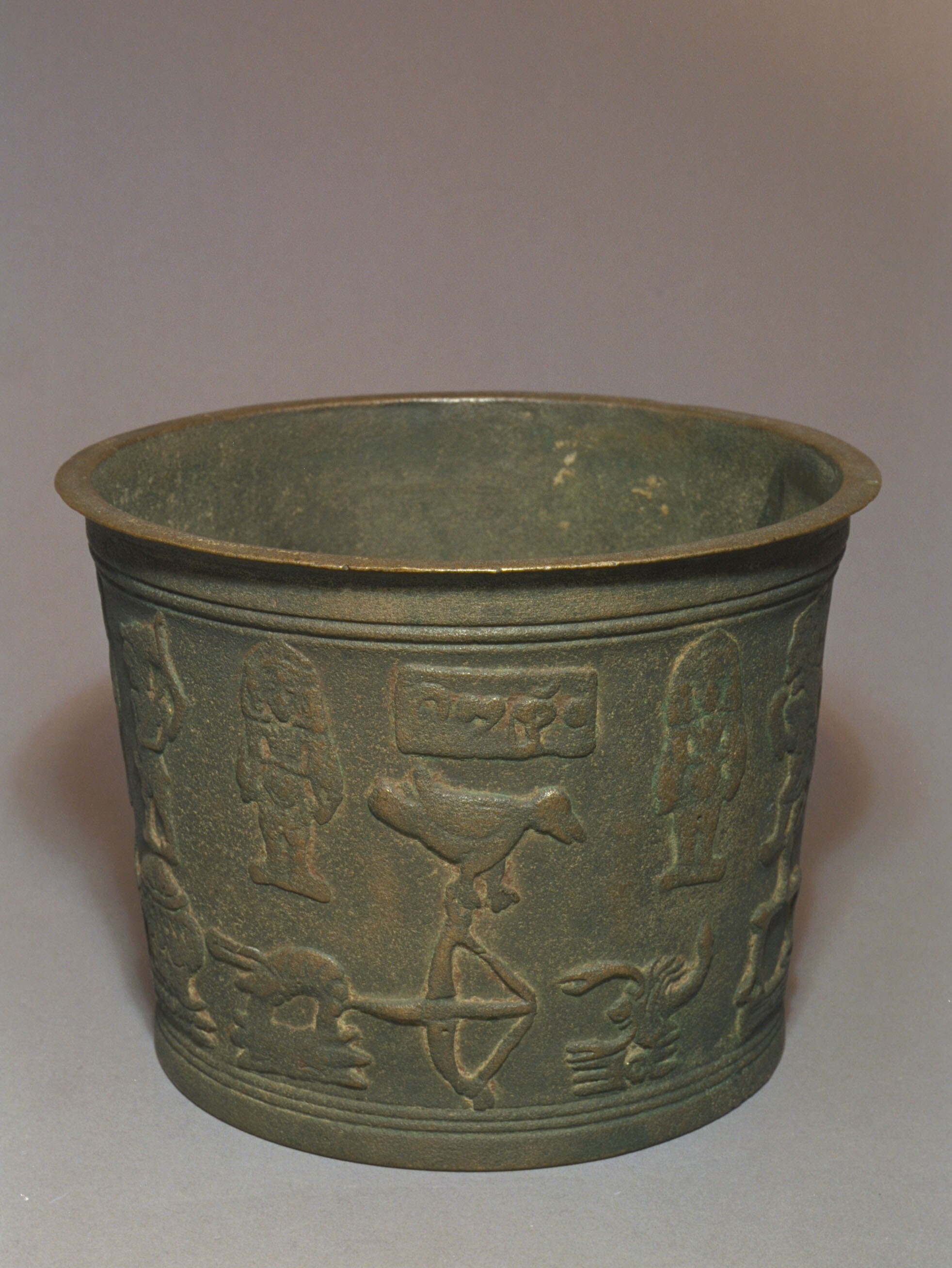 Indo-Javaanse bronzen zodiakbeker, voorstellende lan...