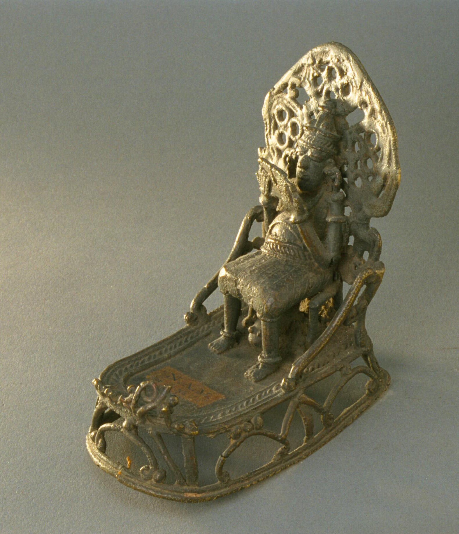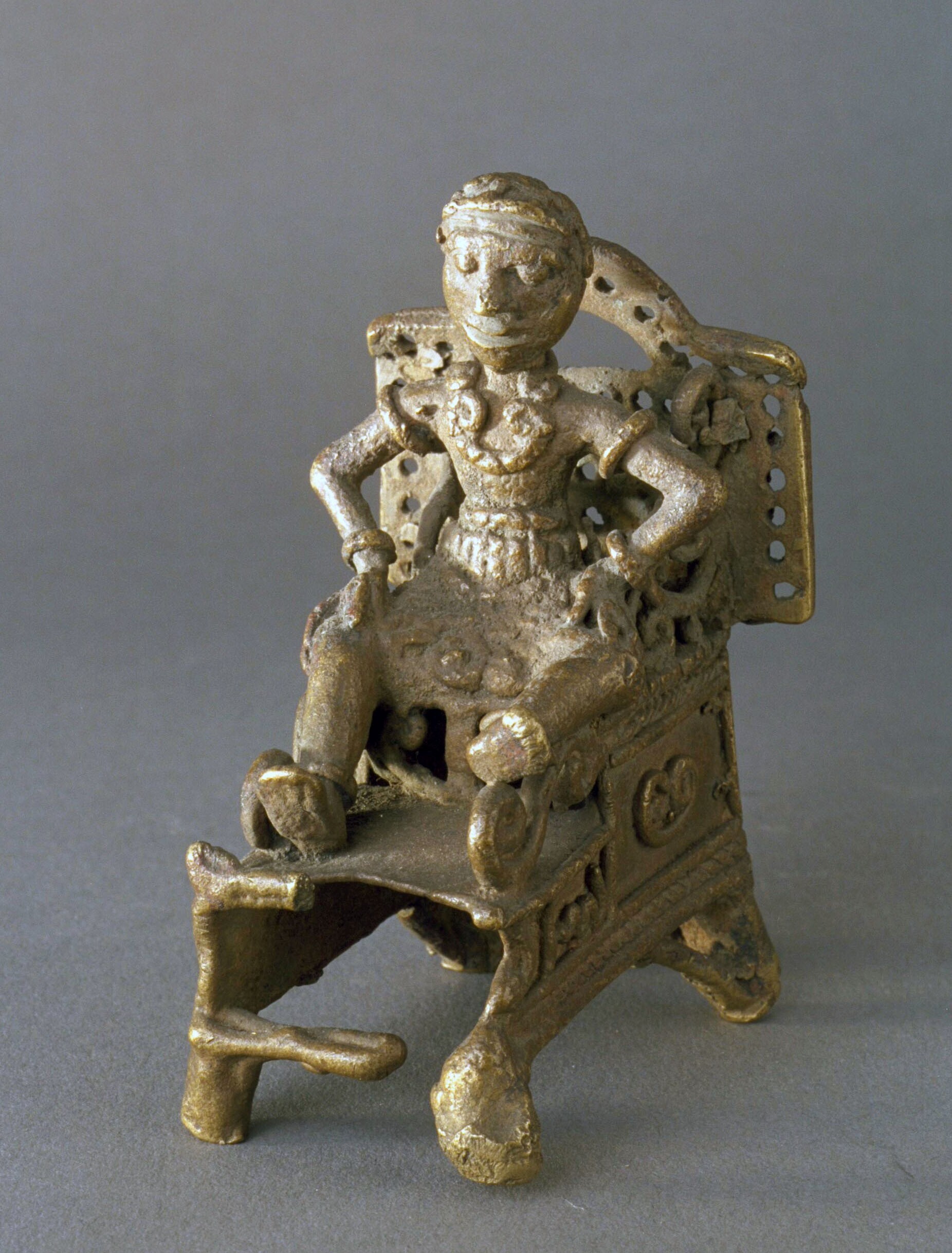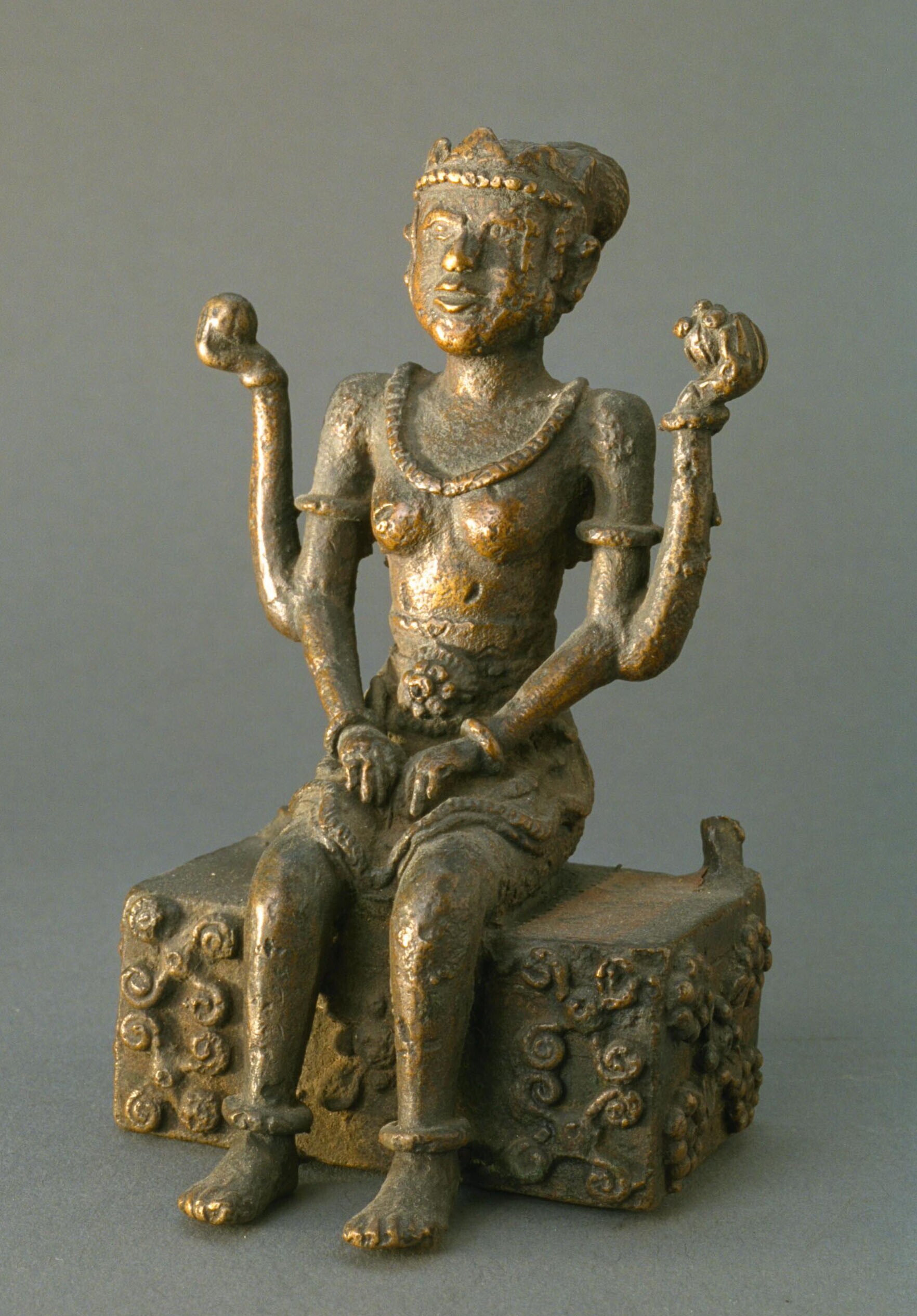 Indo-Javaans bronzen beeldje van een zittende vrouwe...