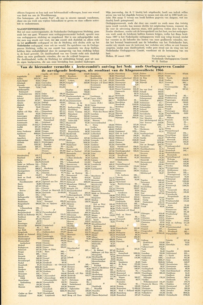 Van de hieronder vermelde collecte-comité's ontving ...