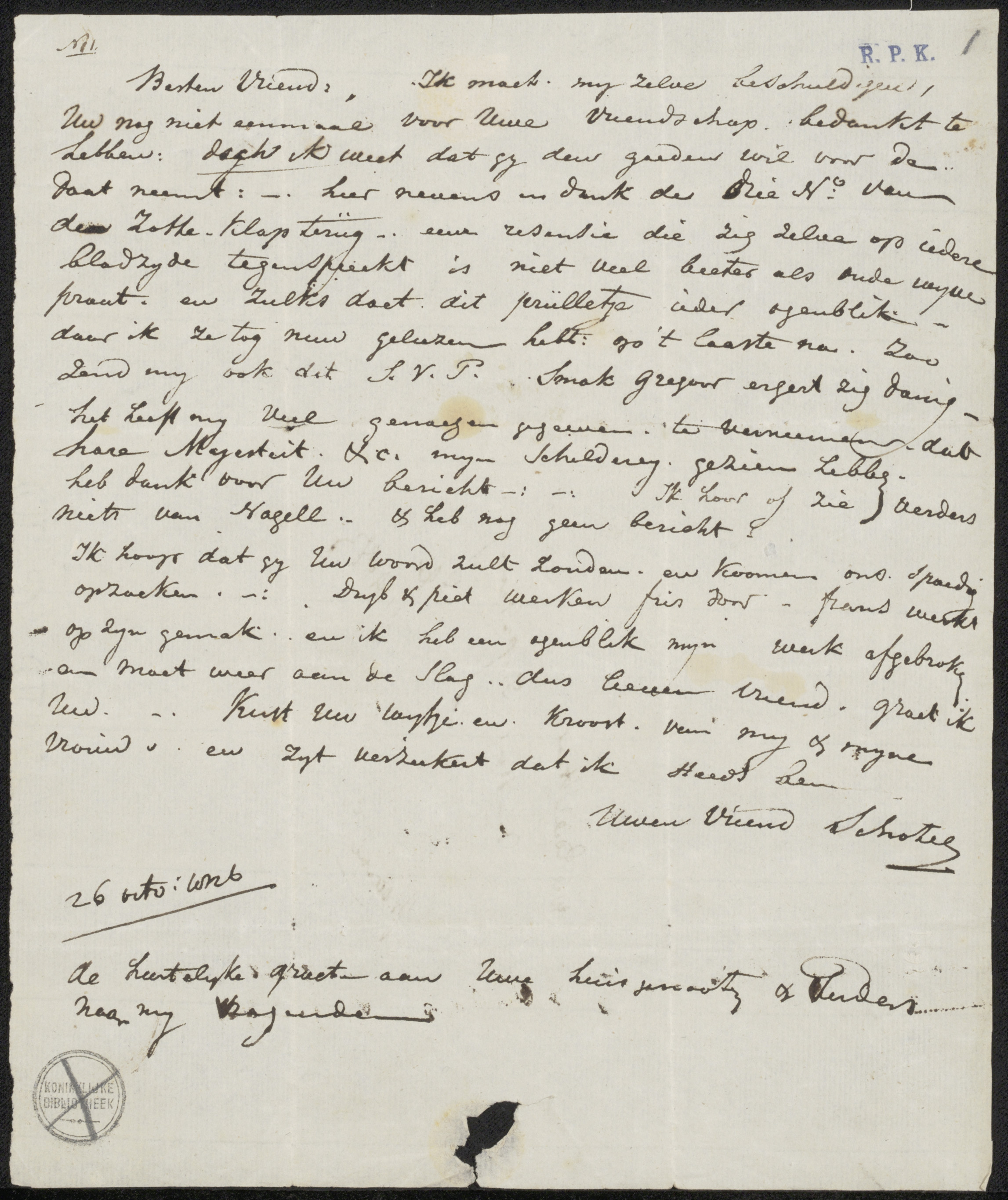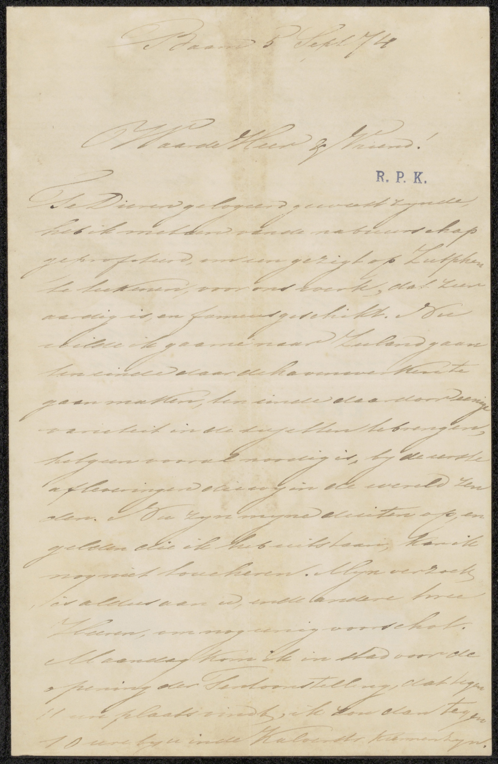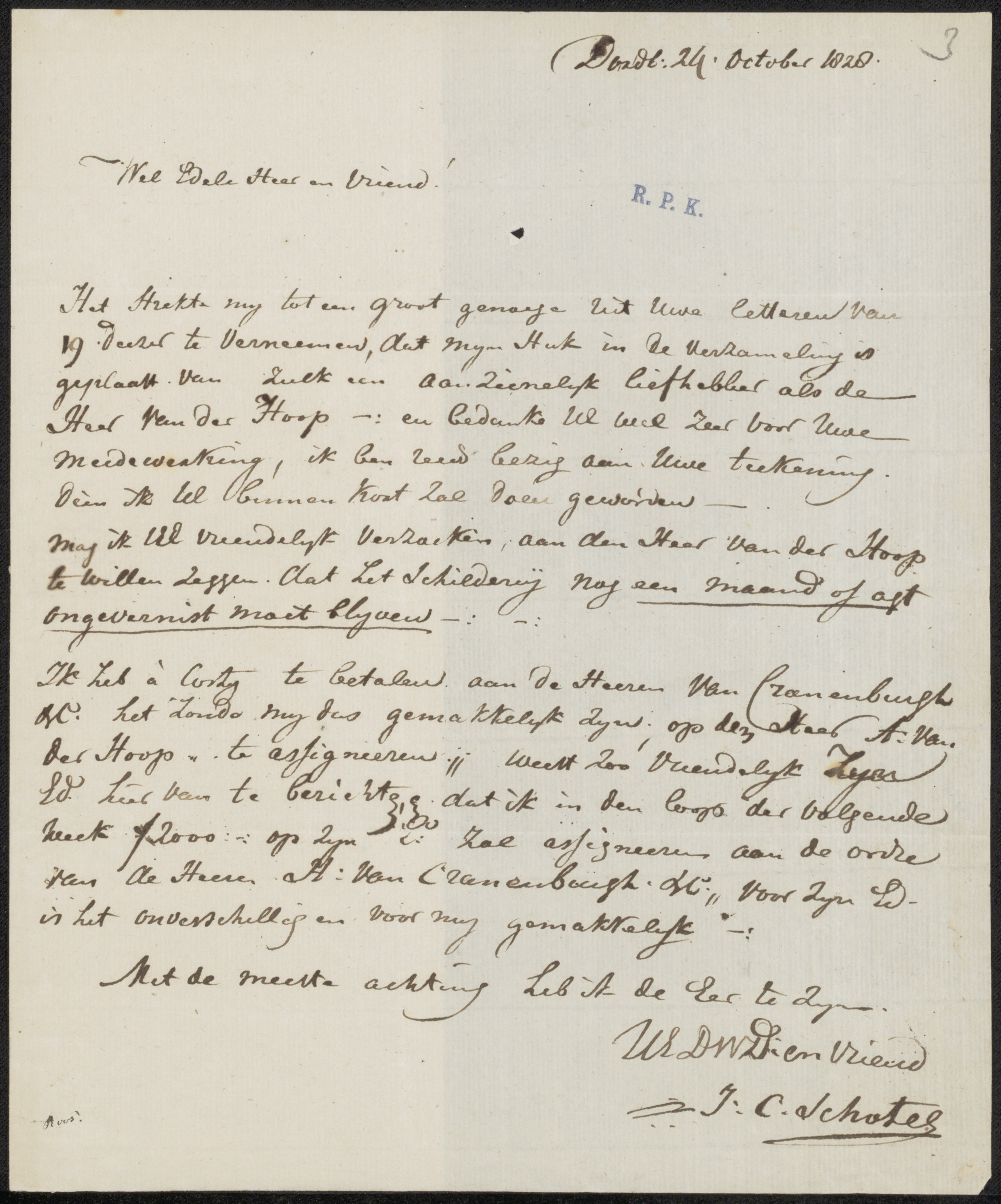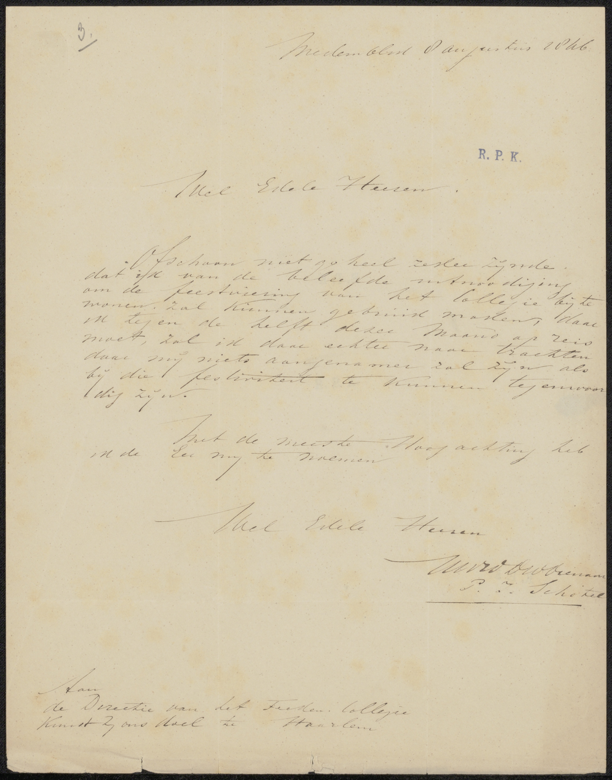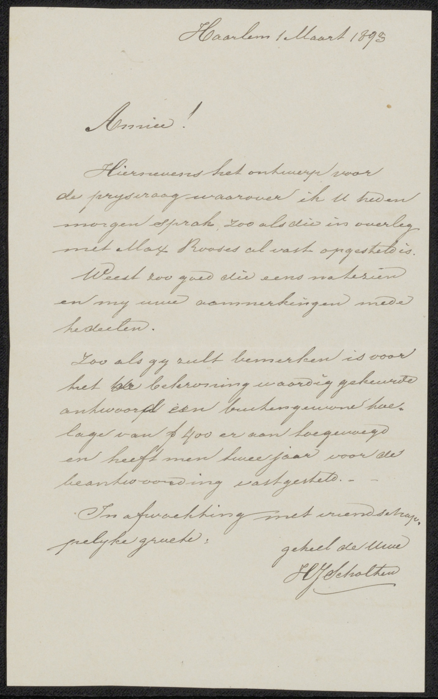 Brief aan J.W.A. van Sijpesteijn, secretaris van Maa...