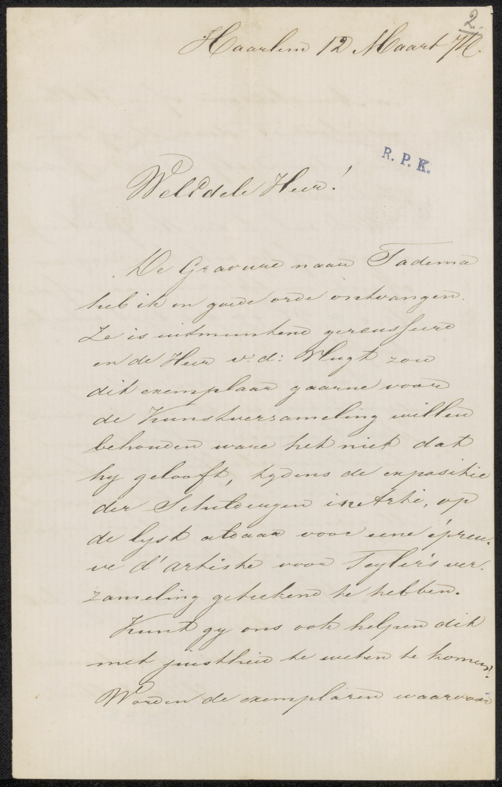 Brief aan Jacob Jan van der Maaten