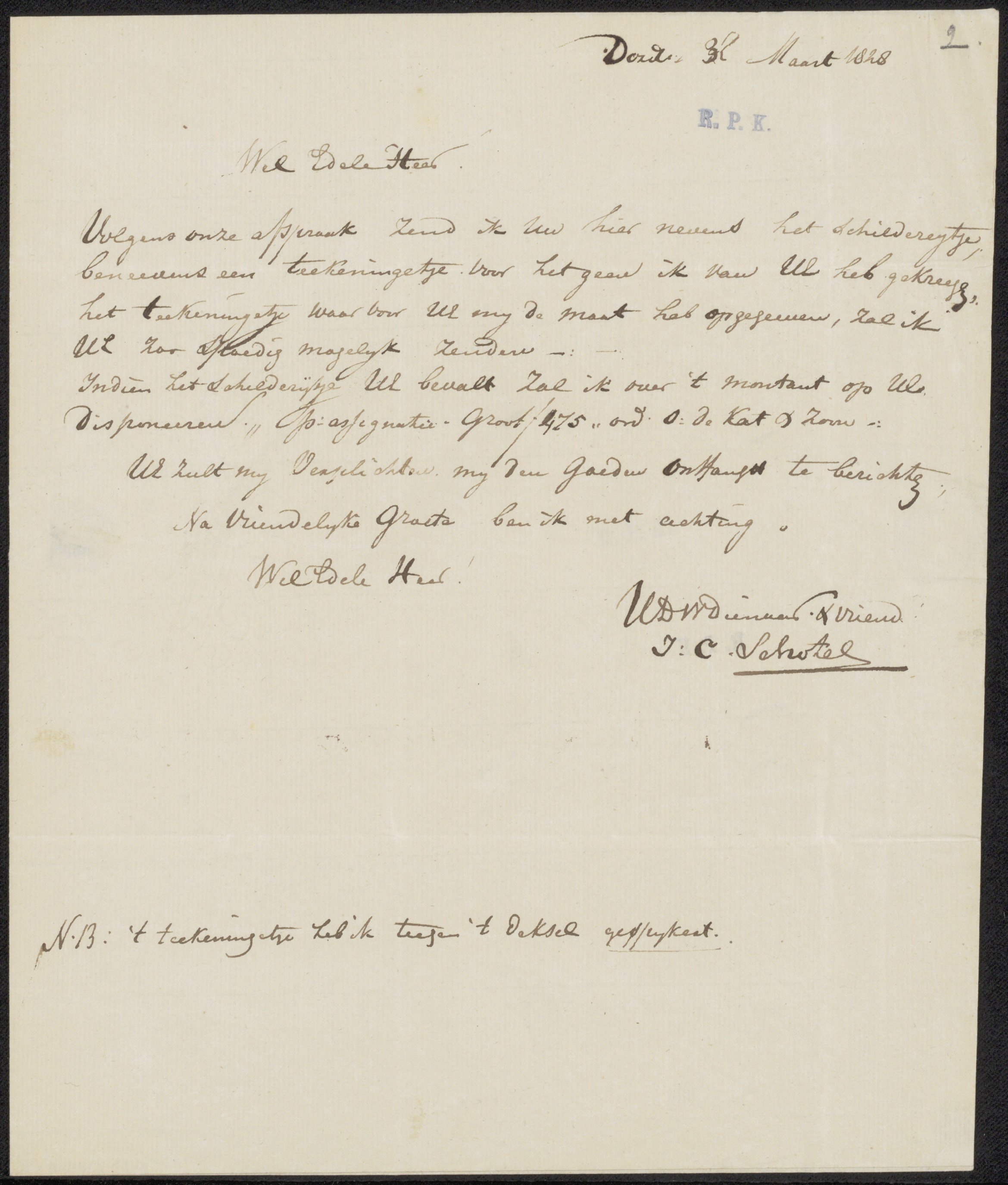 Brief aan Christiaan Immerzeel
