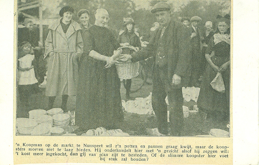 Koopman op de markt te Nunspeet wil z'n potten en pa...