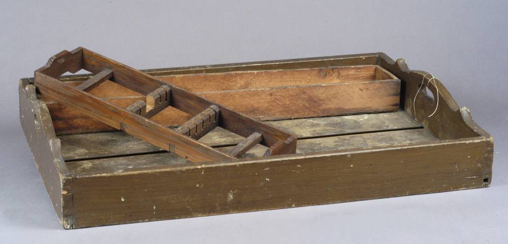 Dienblad met bestekbak van het hotel/lunchroom annex...