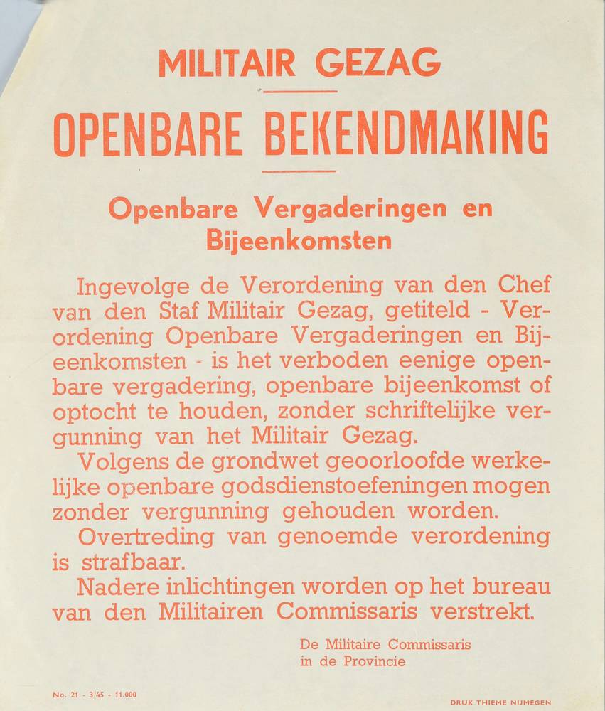openbare bekendmaking van het Militair Gezag over he...