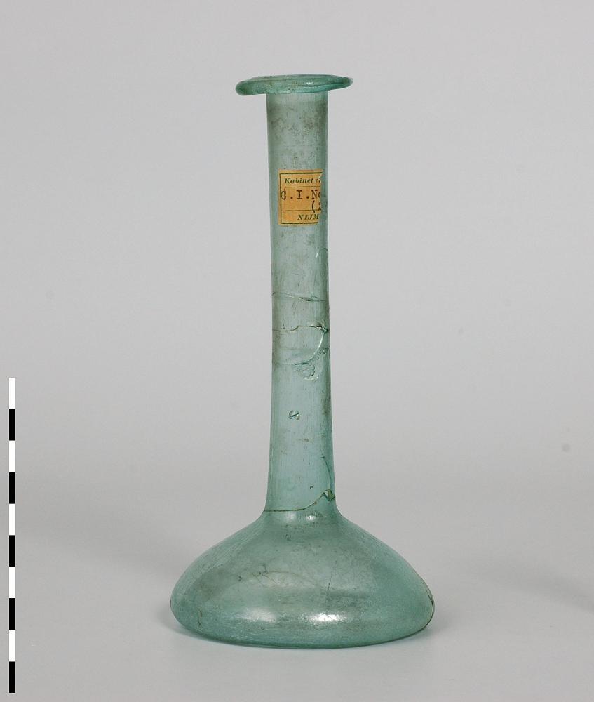 Fles van licht blauwgroen glas uit de Romeinse tijd