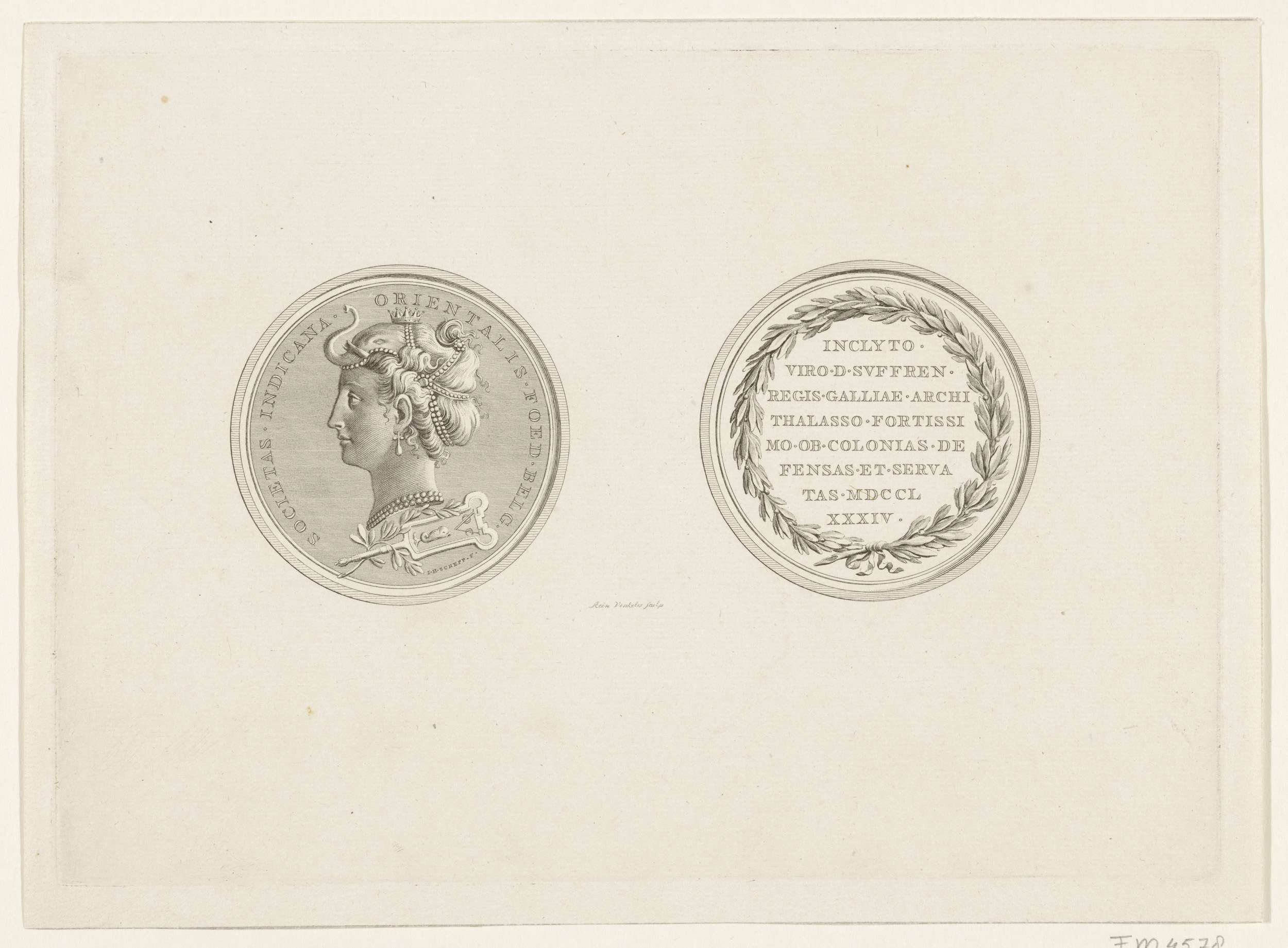 Medaille geschonken aan admiraal Bailli de Suffren n...