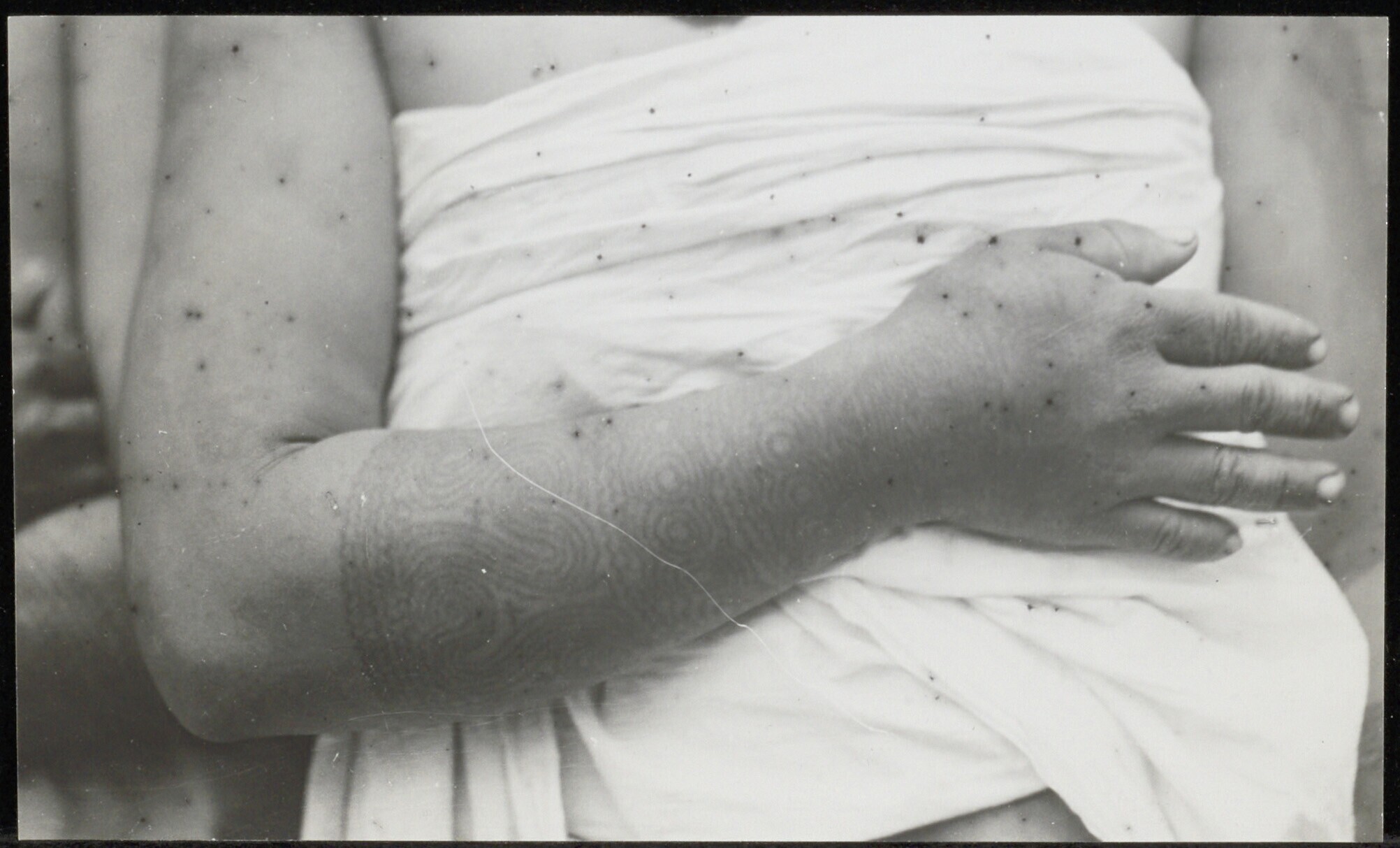 Tatoeëring been (zij) arm, rug. Batang Lupar.