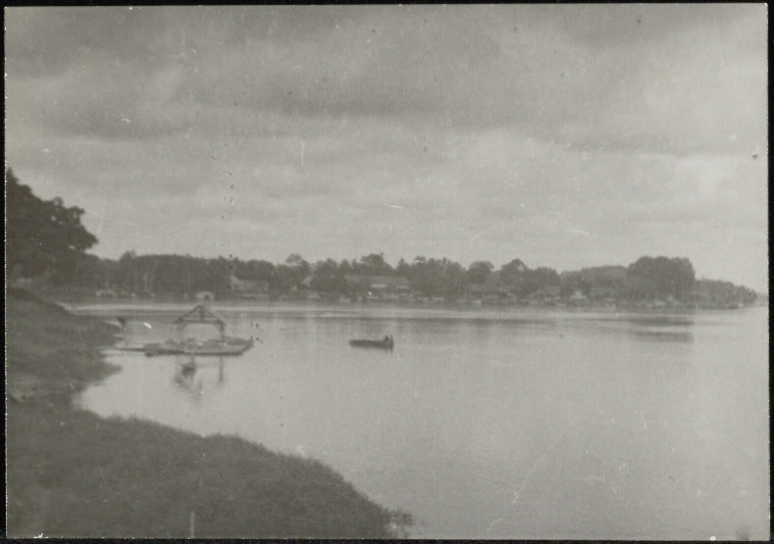 Gezicht op de oever van de Kapuas-rivier in West-Borneo