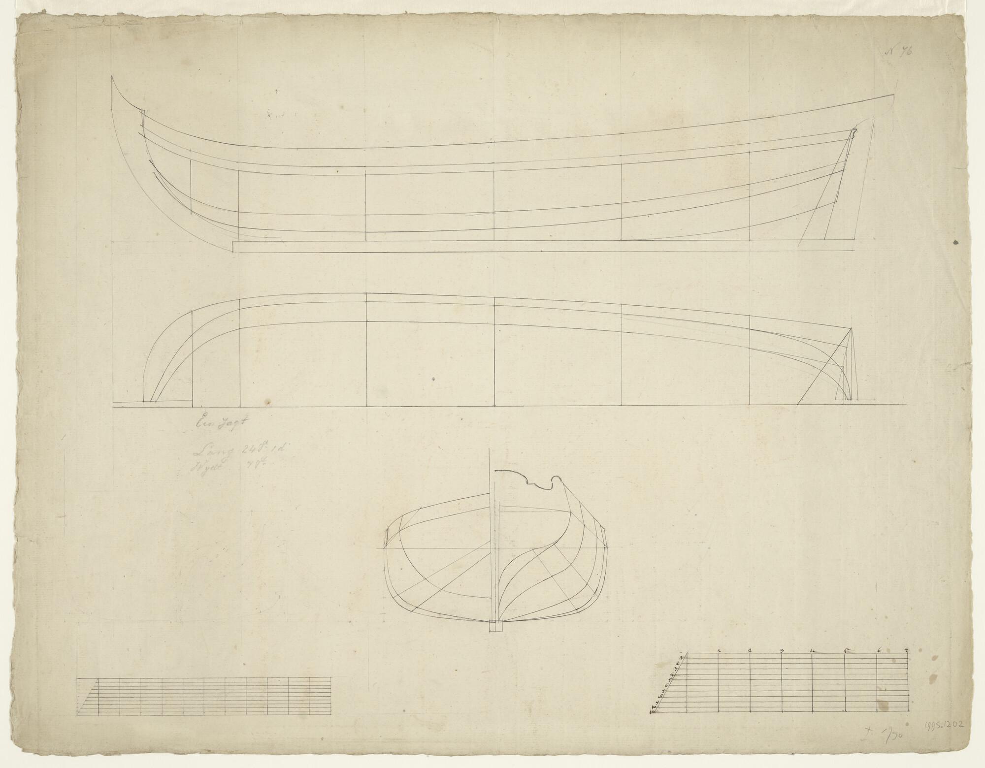 Lijnenplan van een jacht, lang 24 voet 1 duim