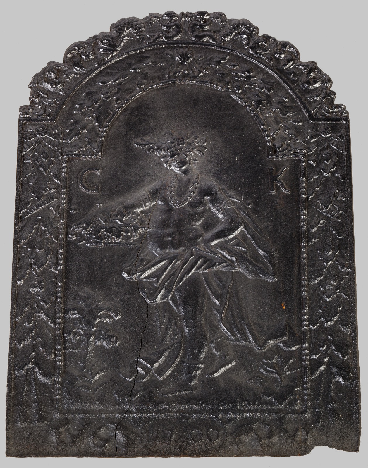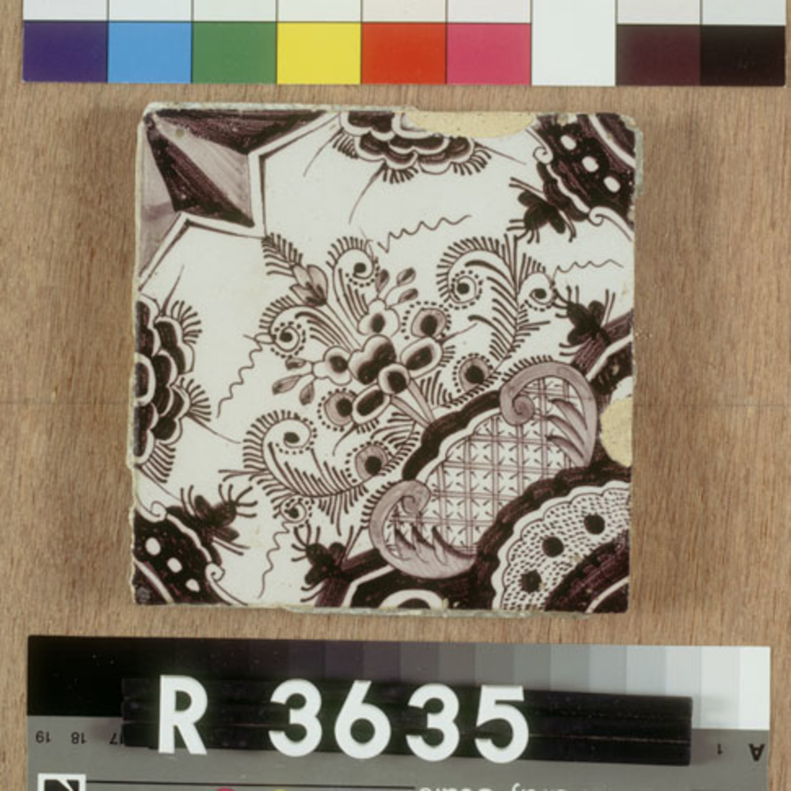 Tegel met decoratieve versiering uit een vierpas,