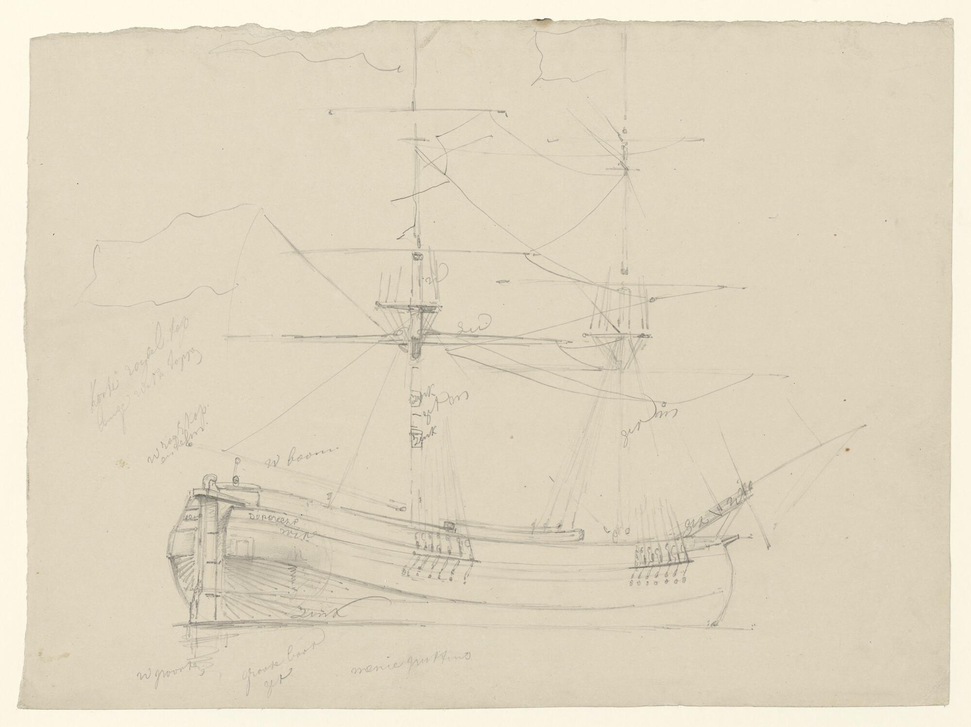 Schets van het Engelse schoenerbrikschip William Crow