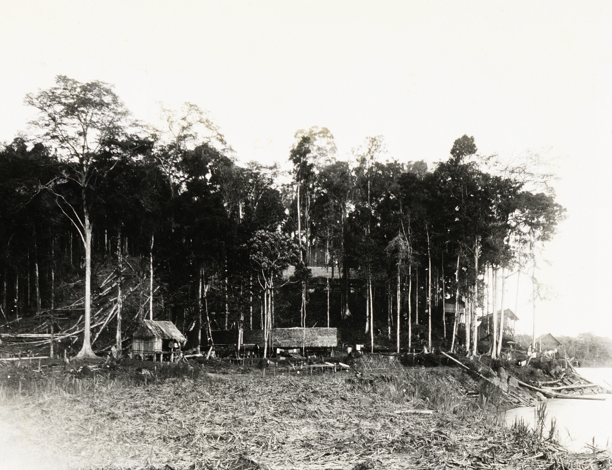 Zicht op de kust van Balikpapan vanaf stoomschip Pyn...