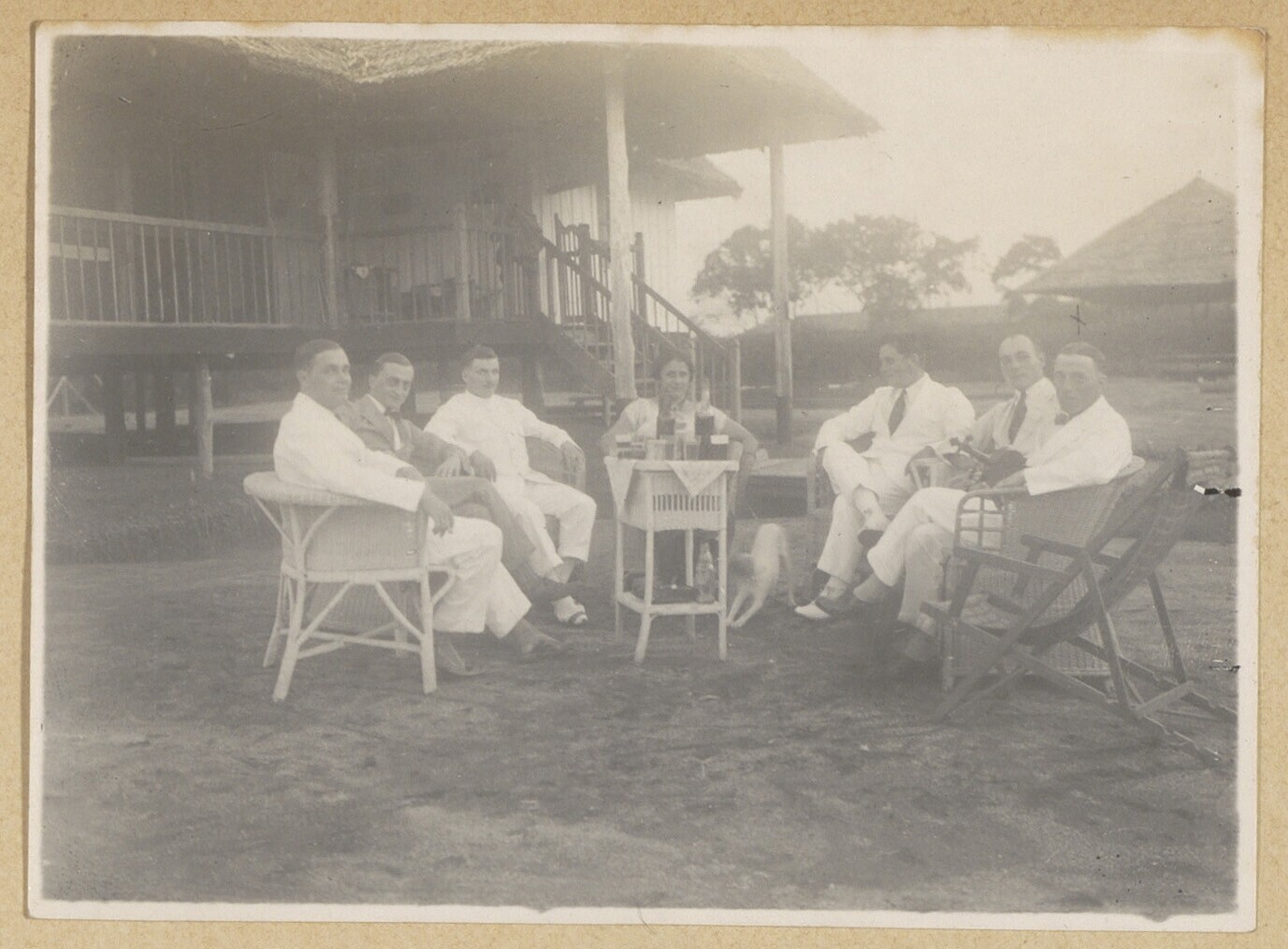 Groep Europese personen in tuin Tandjong Boeloe met ...