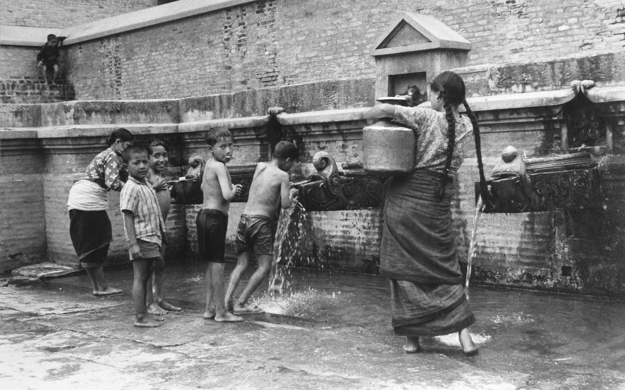 Openbare wasplaats met o.a. een waterhalende vrouw e...
