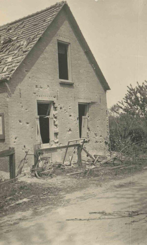 Foto, voorstellende huis na herstel oorlogsschade, L...