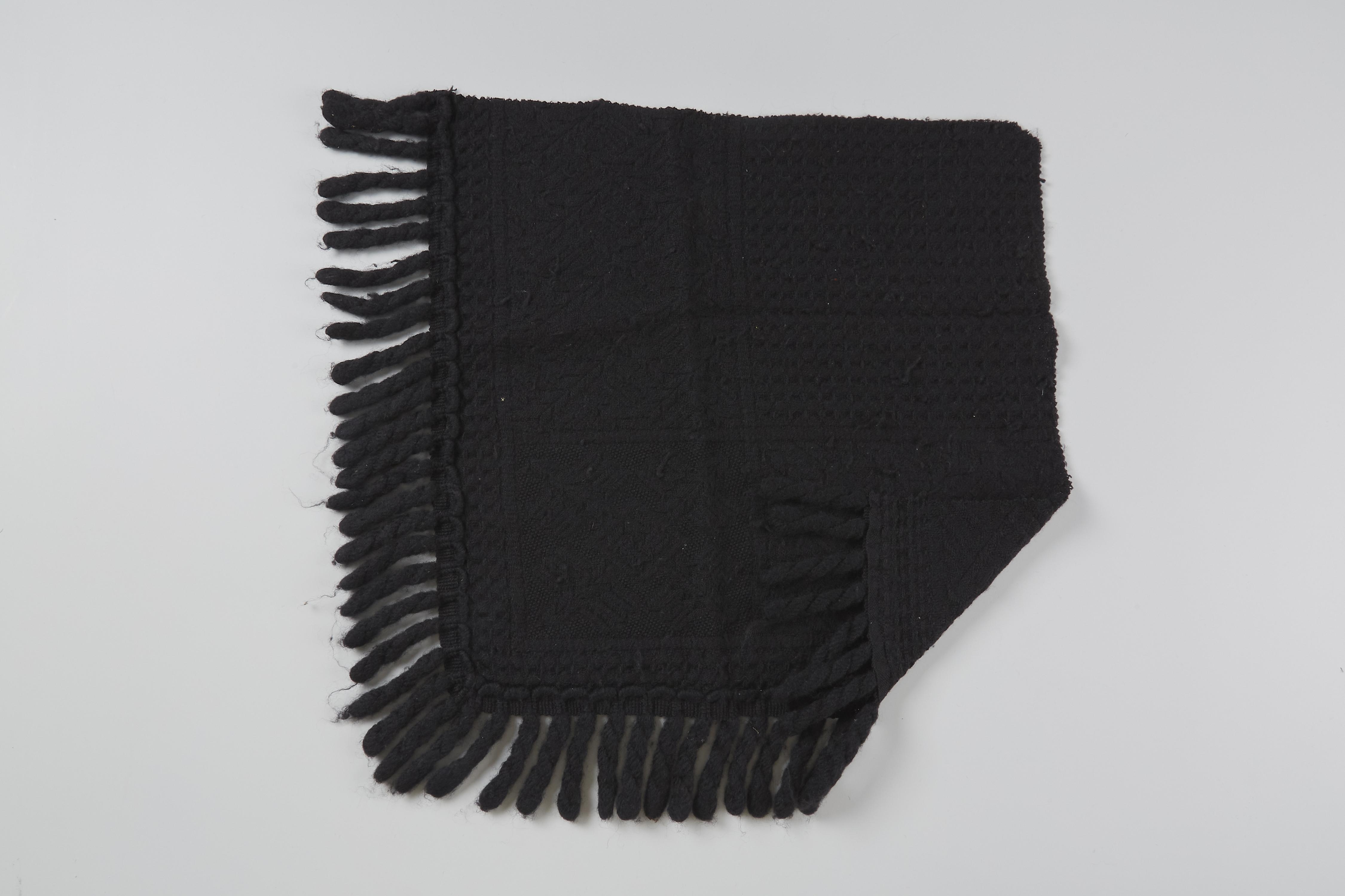Fragment van een zwarte wollen schort, Huizen (staal...