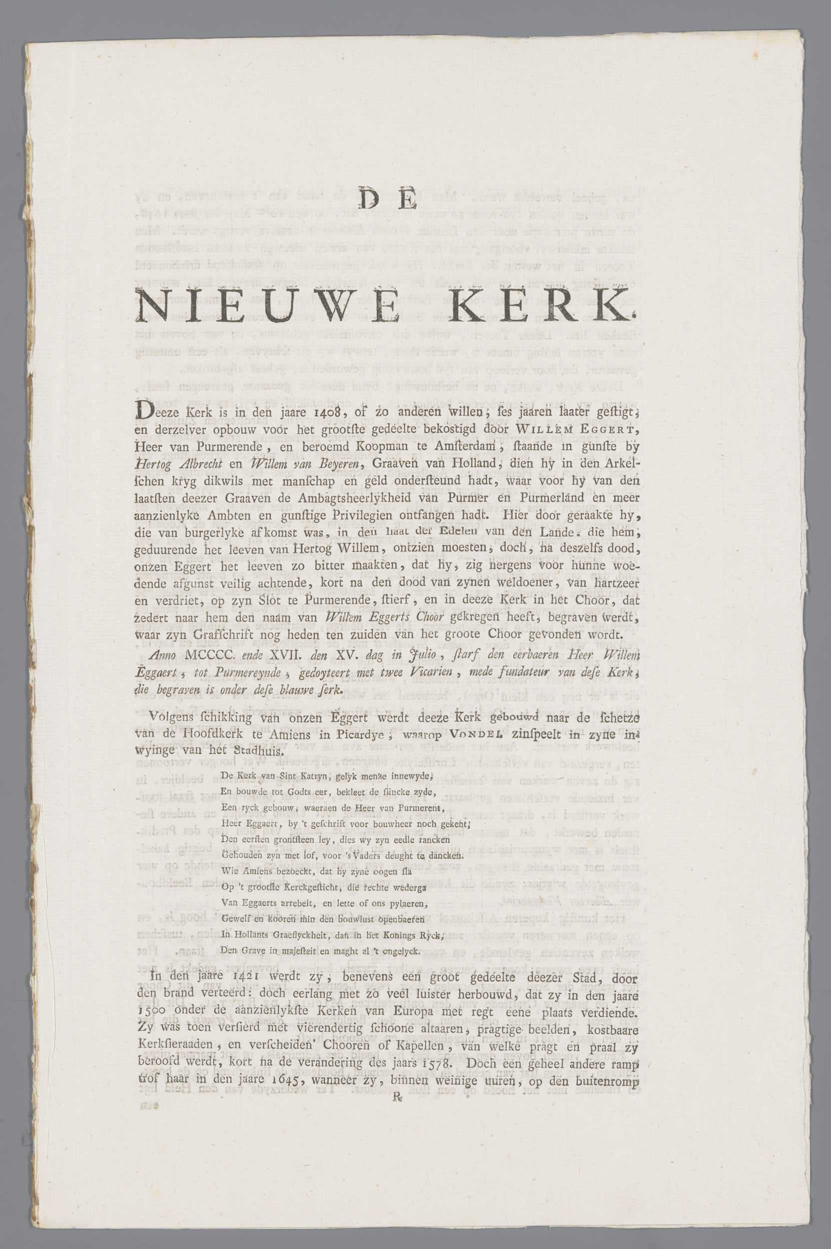 Beschrijving van de Nieuwe Kerk te Amsterdam