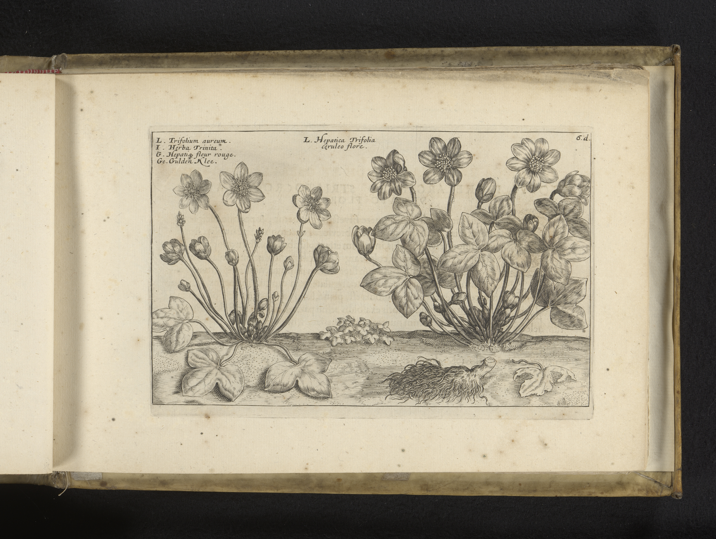 Twee varianten van het leverbloempje (Hepatica nobilis)