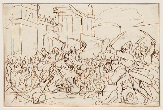Nadab en Abihu bij het altaar gedood door hemels vuur