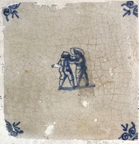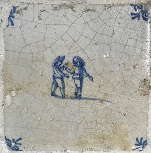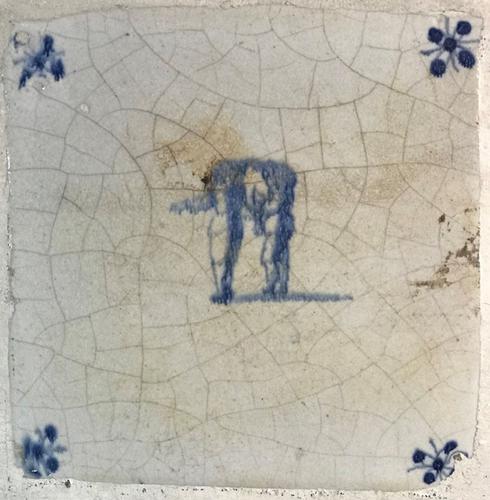 Tegel van aardewerk met tinglazuur voorstellende ? -...