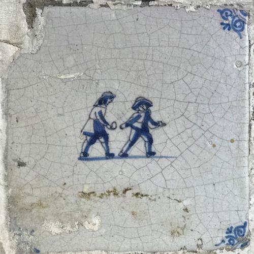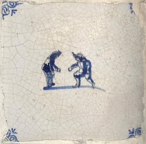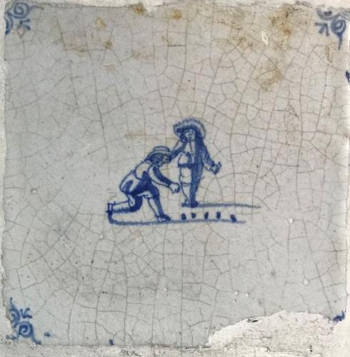 Antieke tegel met voorstelling van man met hoed
