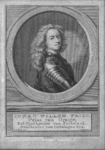 Gravure van portret van Johan Wilhelm Friso in lijst