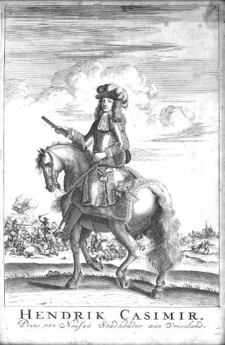 Gravure van Hendrik Casimir. Prins van Nassau, op pa...
