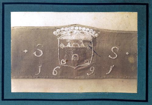 Foto in lijst van schoorsteenmantekleed uit 1691.