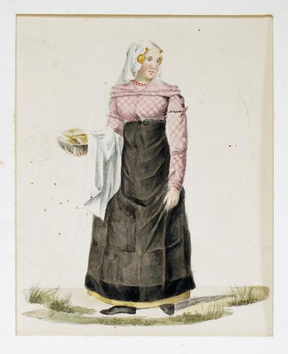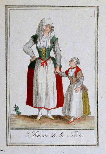 Lithografie van gehuwde en ongehuwde vrouw in dracht...