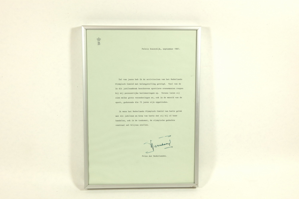 Brief van Prins Bernard aan het NOC ter gelegenheid ...