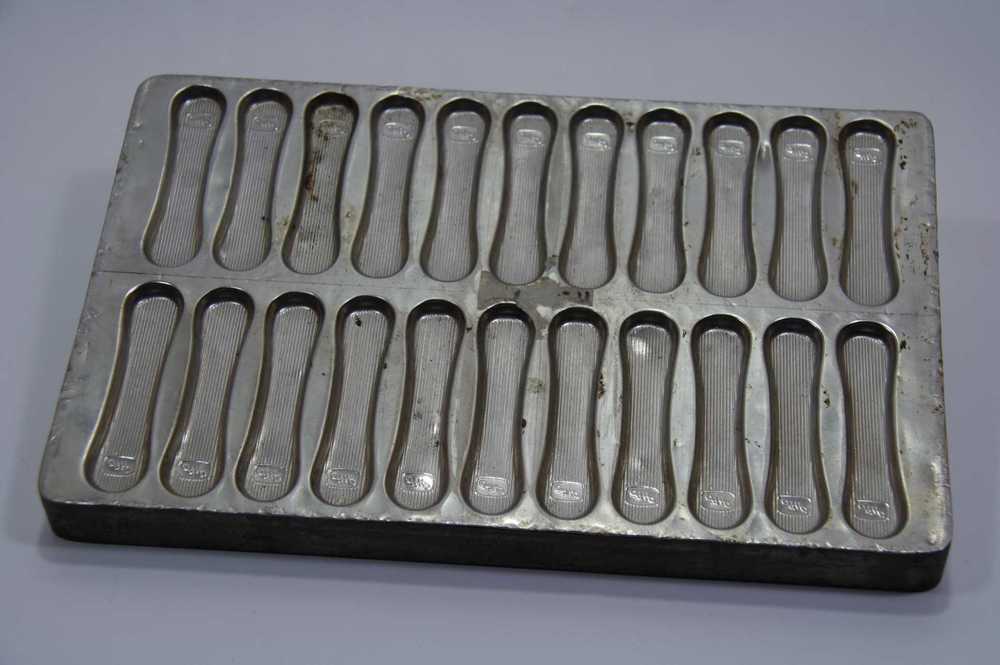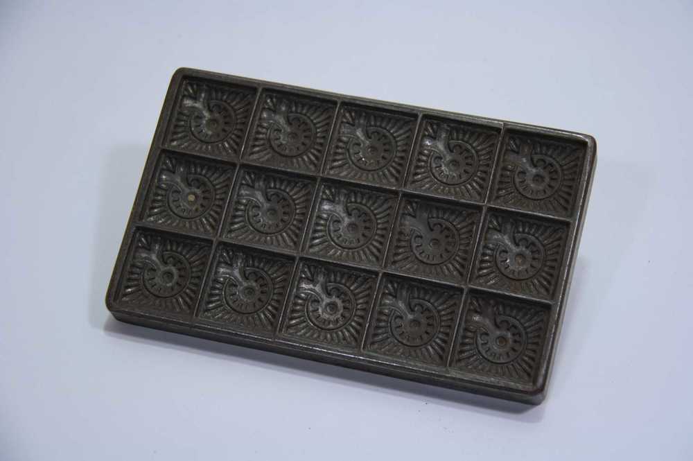 Chocoladevorm van metaal voor 15 tabletten met raders