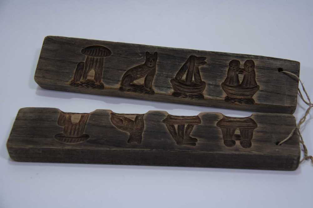Speculaasplank met 3 figuren: een appelpukster, een ...