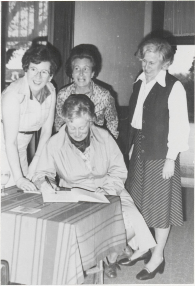 Drie heren en twee dames bij de Belvedere te Nijmegen