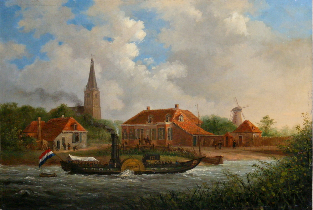 Gezicht op Doesburg met stoomraderboot Drusus