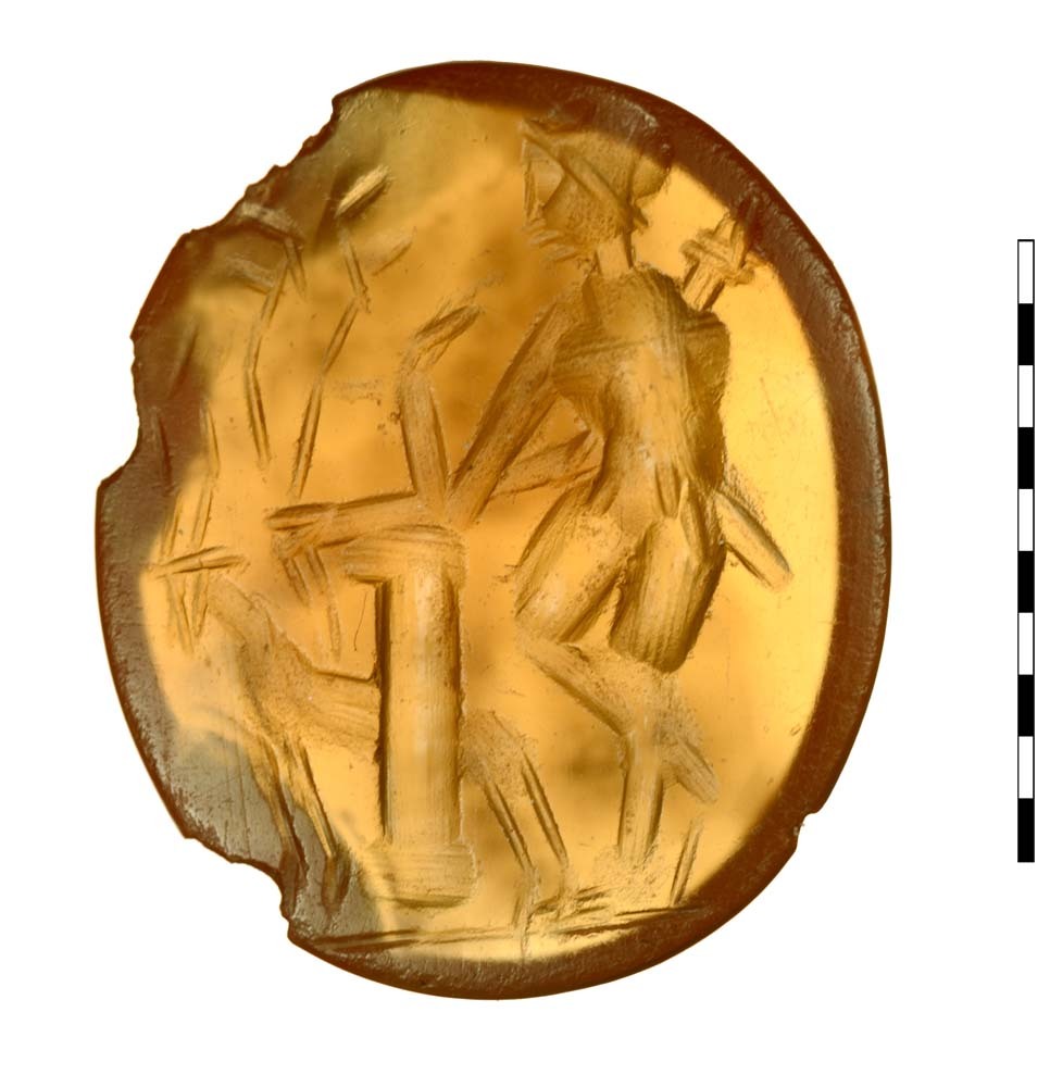 Gem van natuursteen uit de 18e eeuw (?) in koperen ring