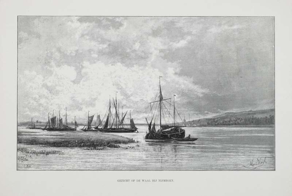 Gezicht op Nijmegen vanaf de Waal, uit het oosten