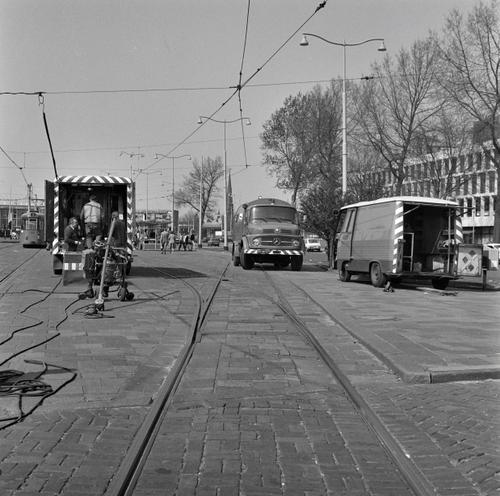 Rotterdam, Kruisplein, werkzaamheden aan de tramrails