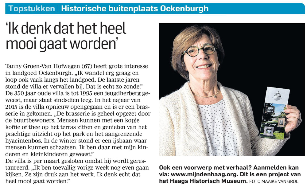 Het topstuk (folder van buitenplaats Ockenburgh) van...