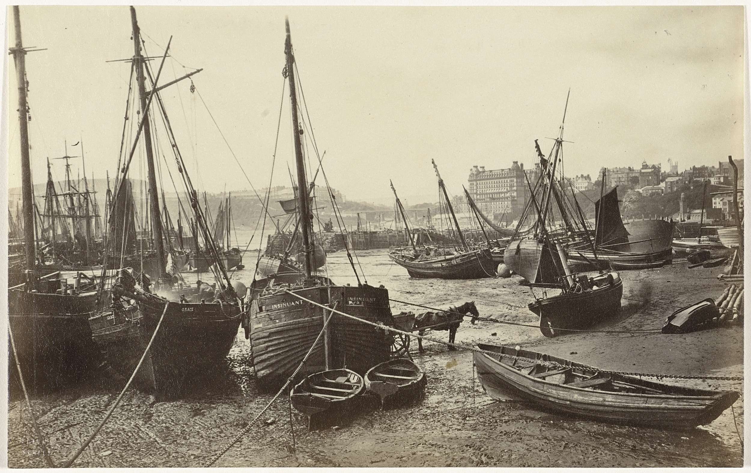 Gezicht op de haven van Scarborough, op de voorgrond...