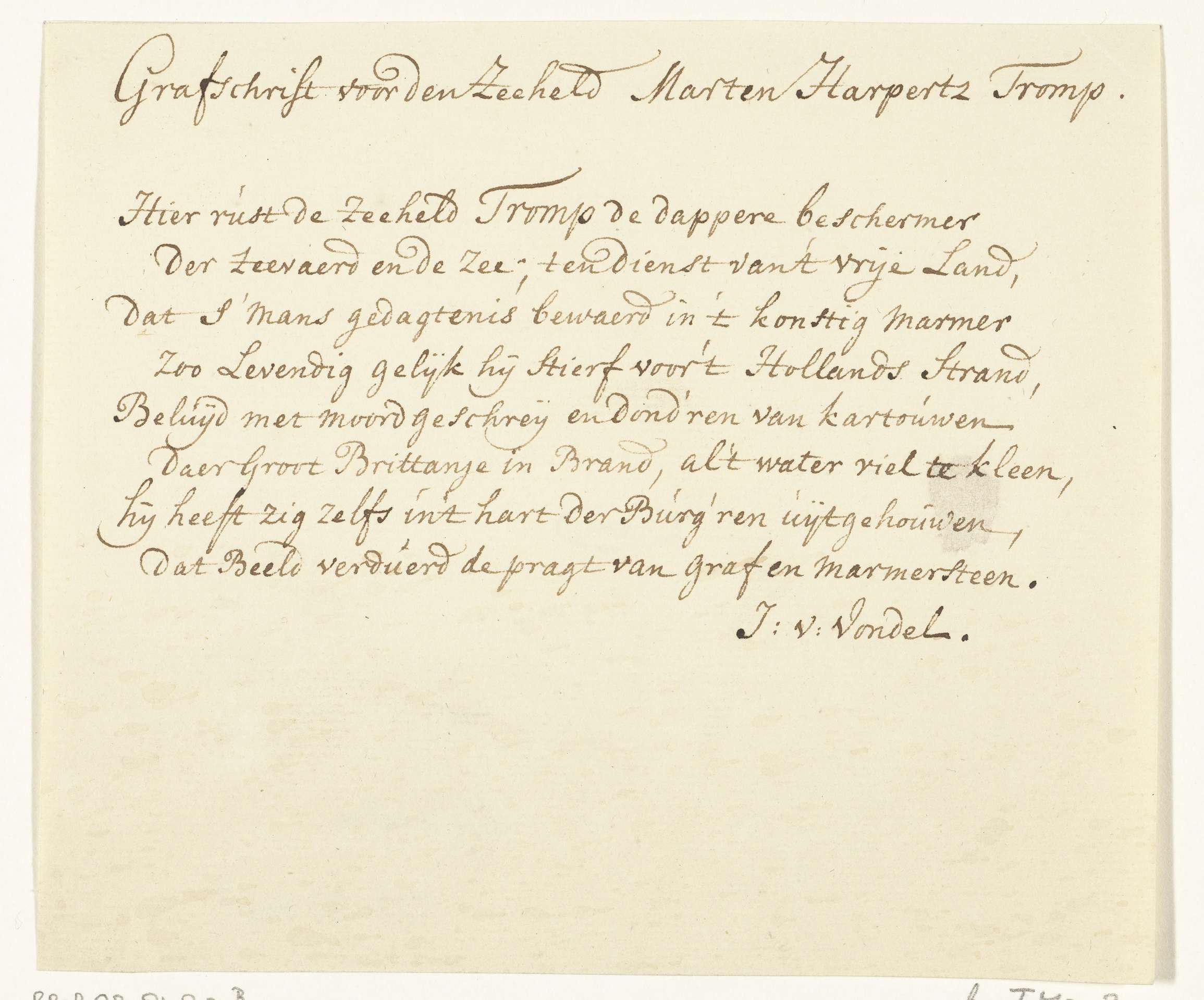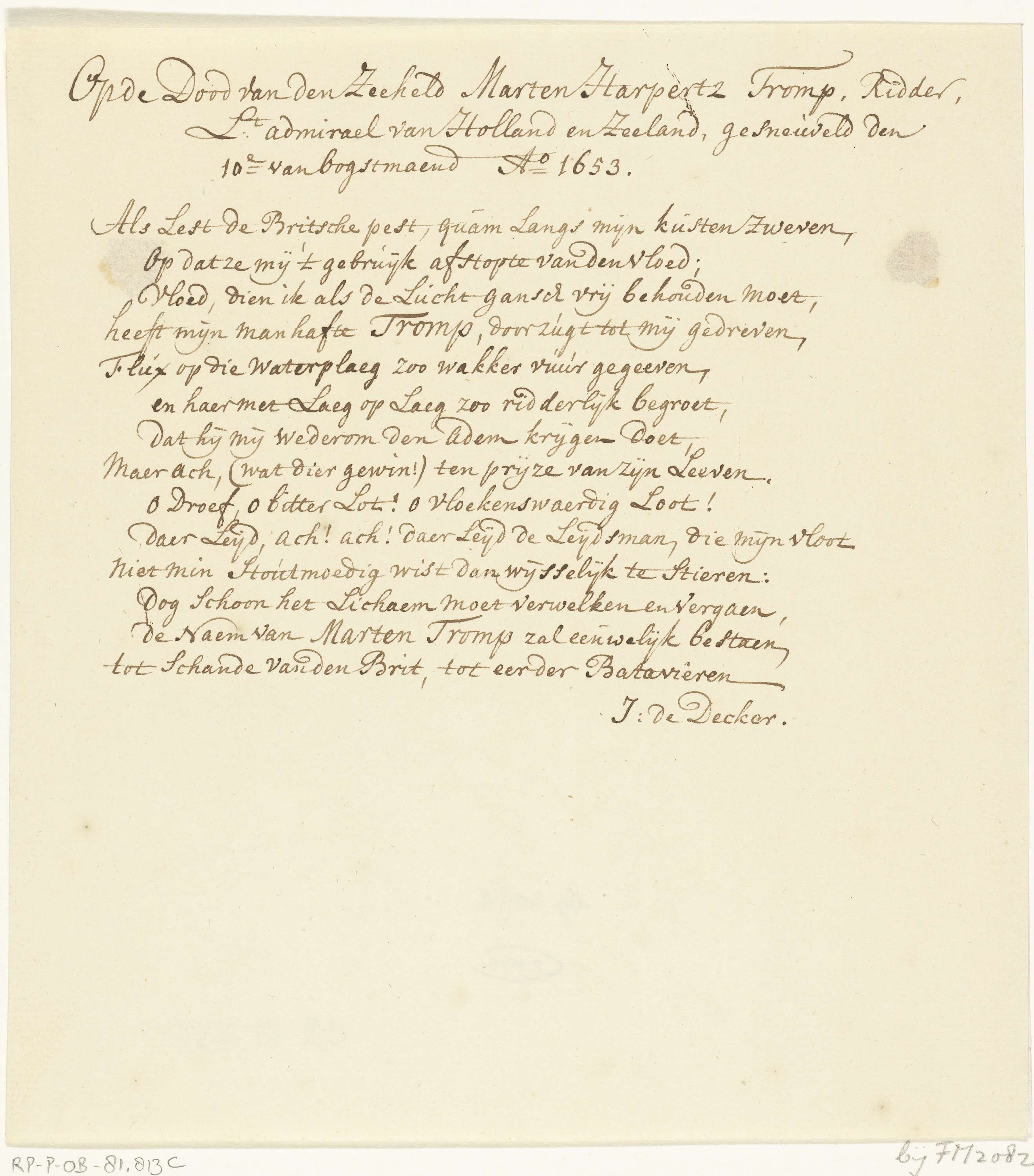 Gedicht op de dood van Maarten Tromp, gesneuveld in ...