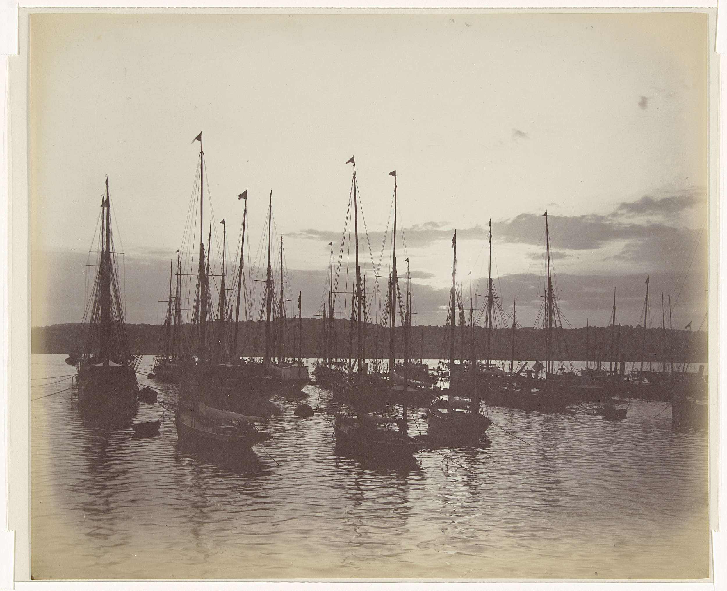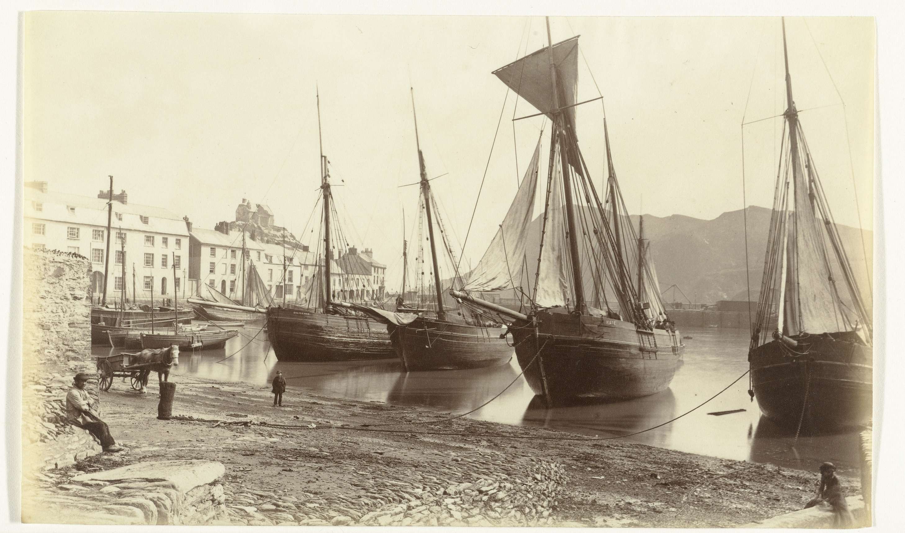 Schepen in een haven, mogelijk Saint Peter Port in G...