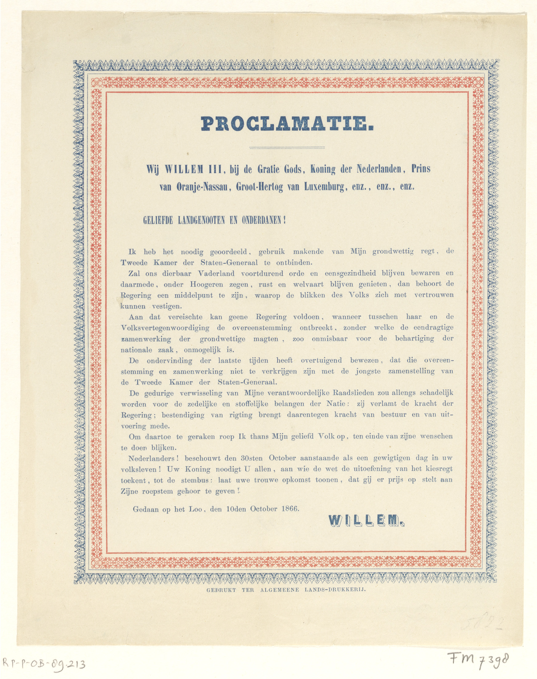 Proclamatie van koning Willem III, 1866