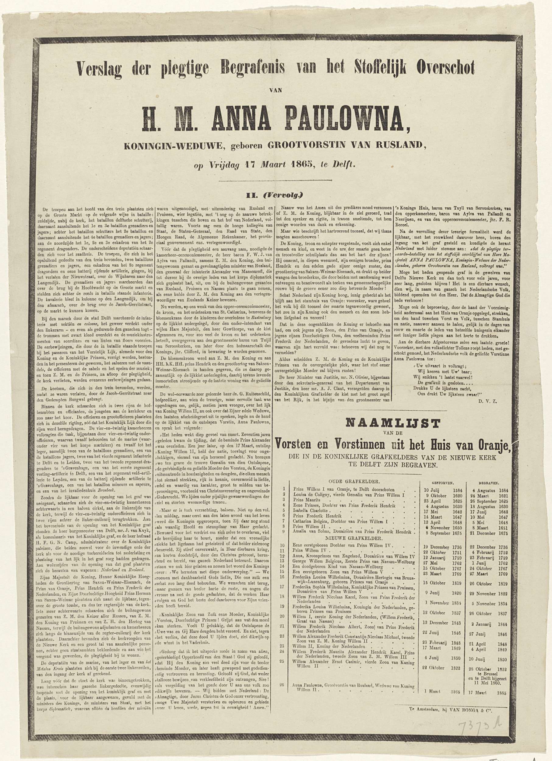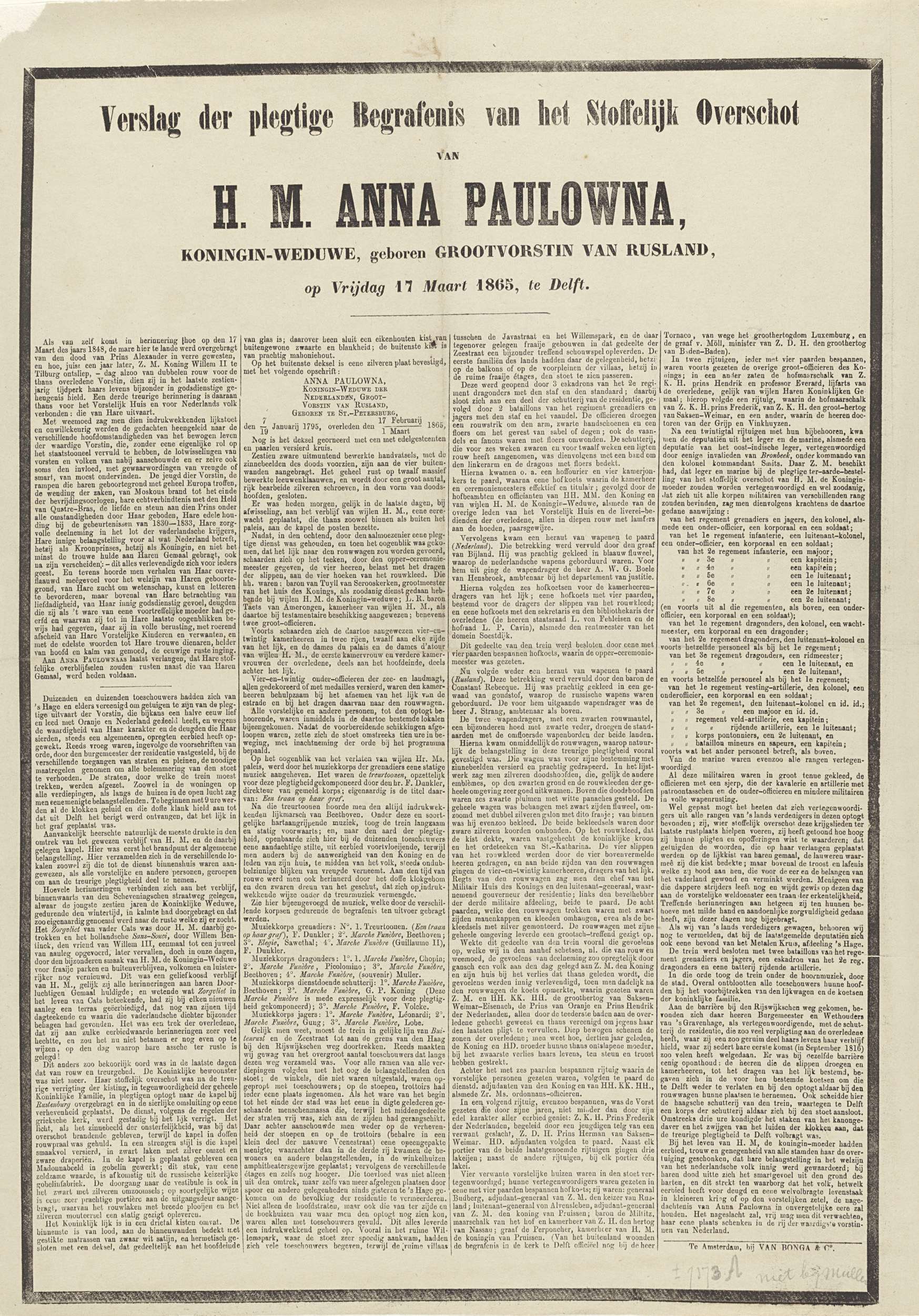 Verslag der plegtige Begrafenis van het Stoffelijk O...