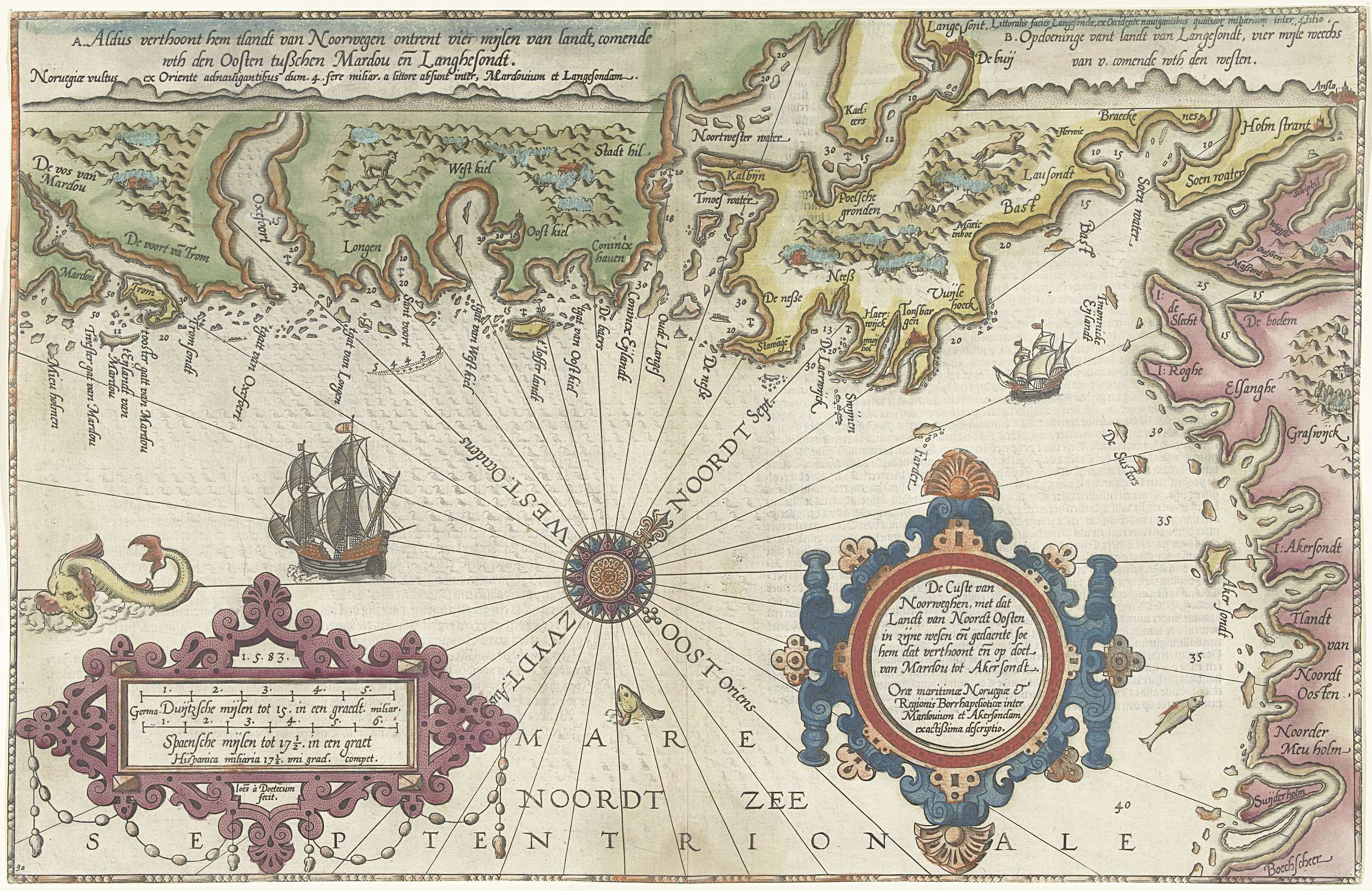Kaart van de noordkust van Engeland bij Newcastle up...