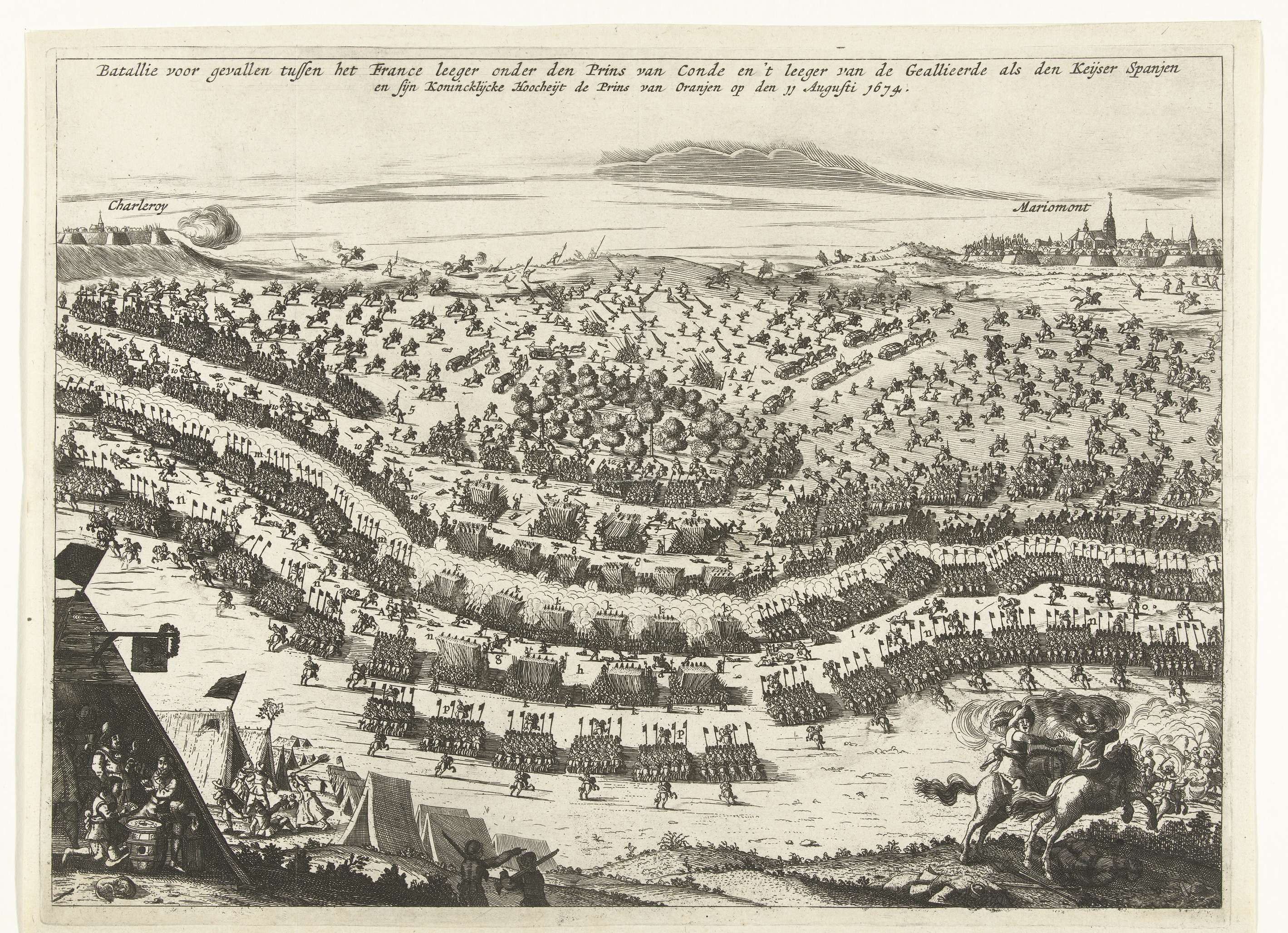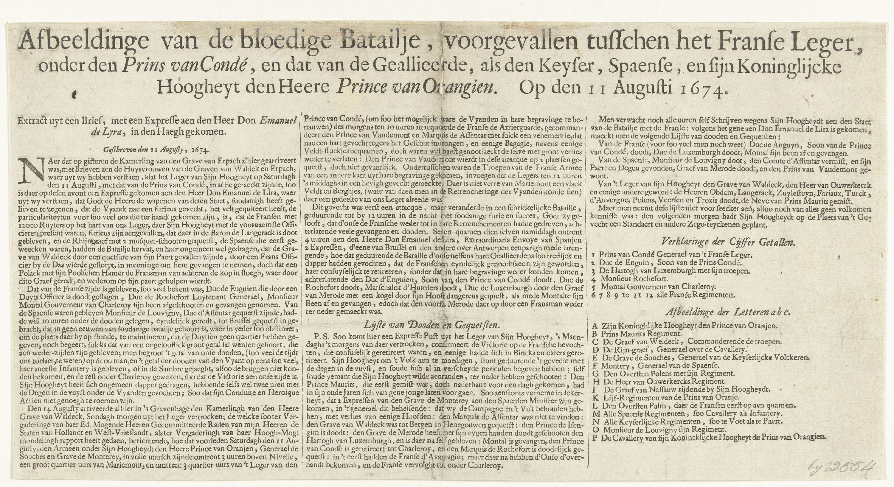 Tekstblad bij de prent van de Slag bij Seneffe, 1674