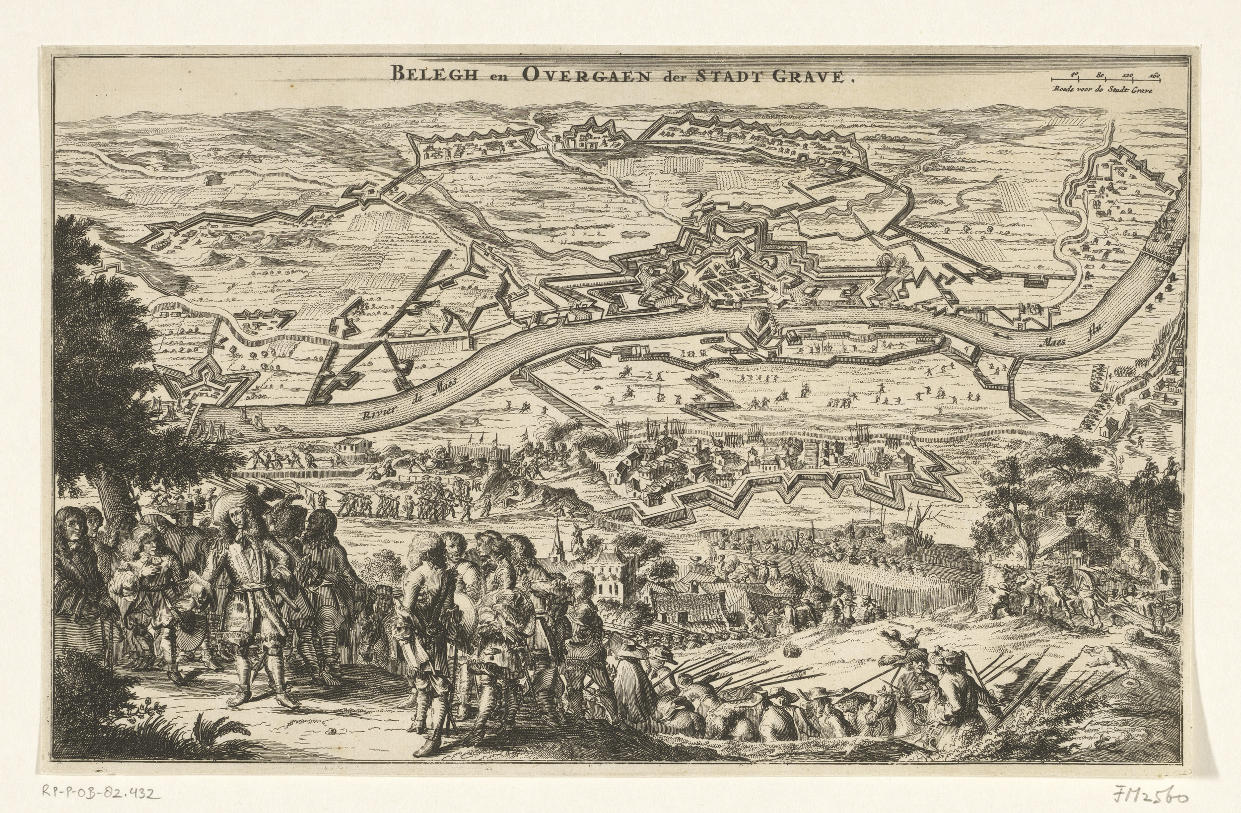Kaart van het beleg van Grave door Willem III, 1674