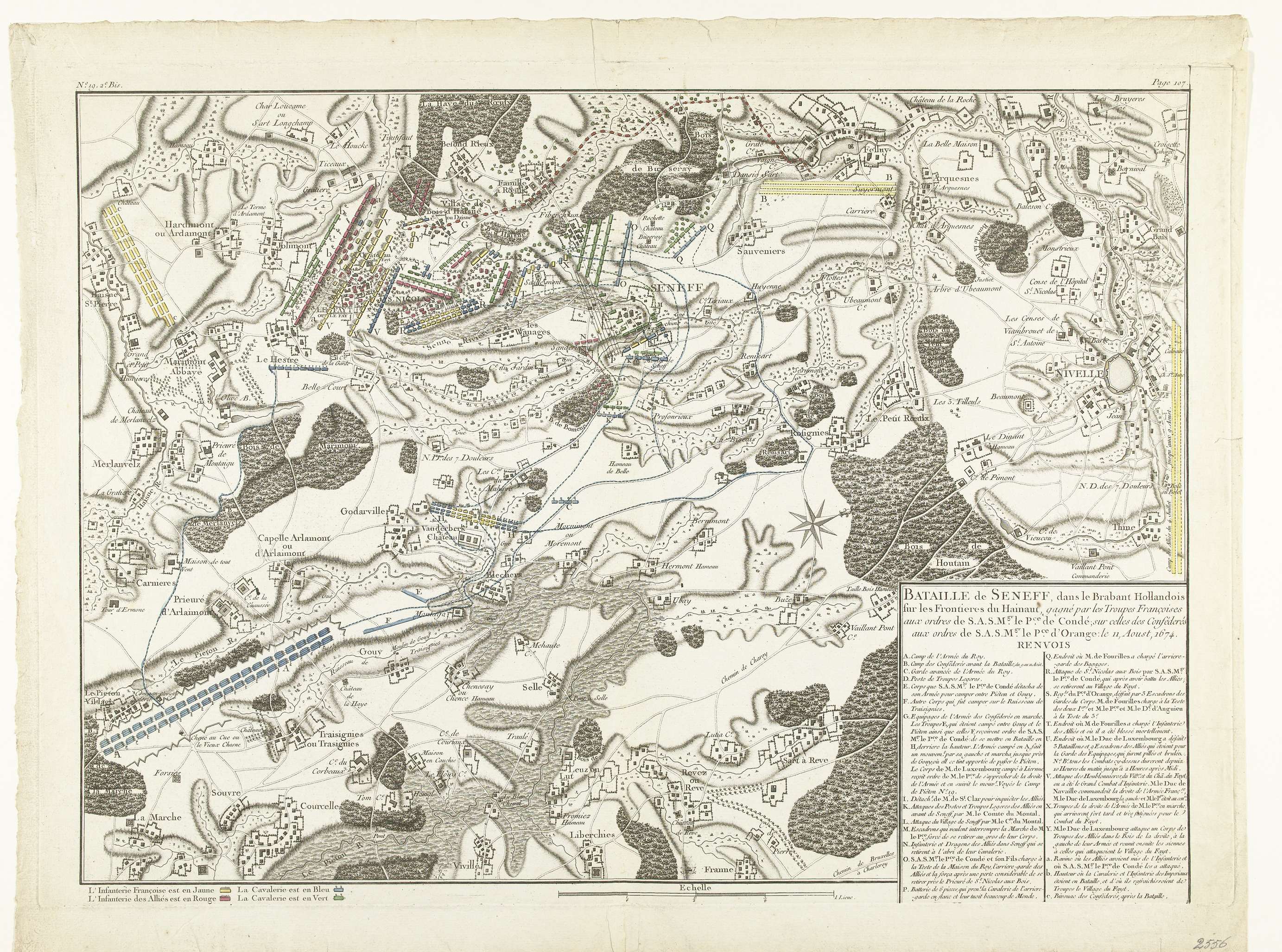 Kaart van de slag bij Seneffe, 1674